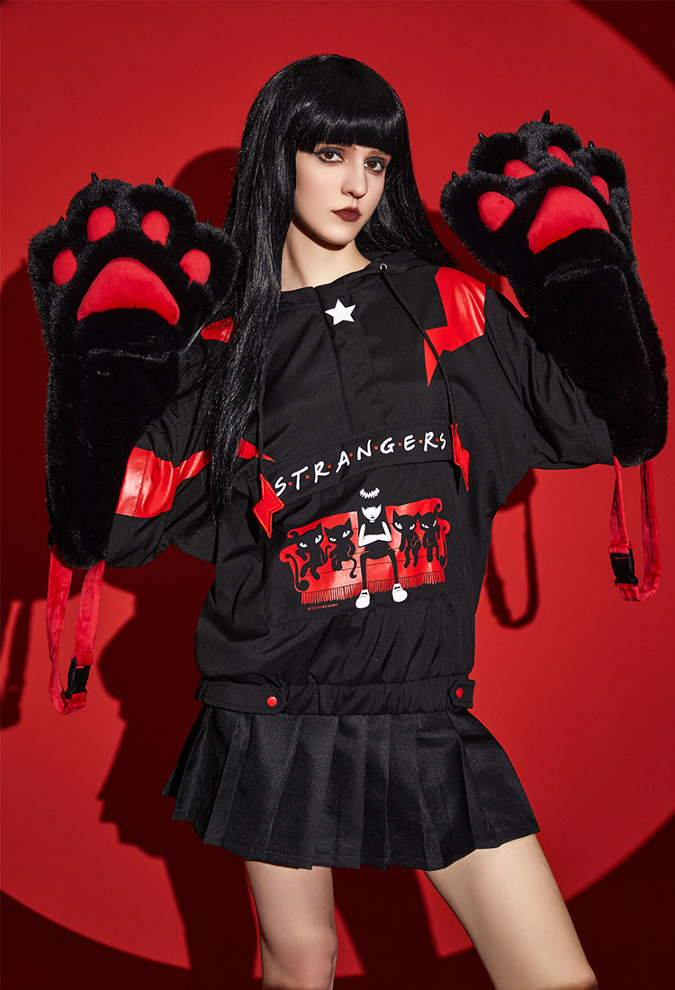 [Officially Licensed] Emily The Strange Micotaku Paw Hoodie Black and Red Unisex Hoodie