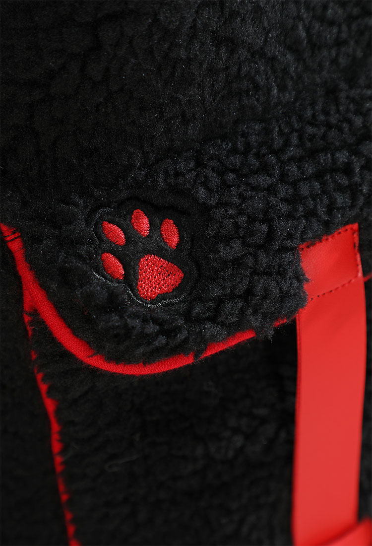 - Material: Hoodie fabric, faux leather