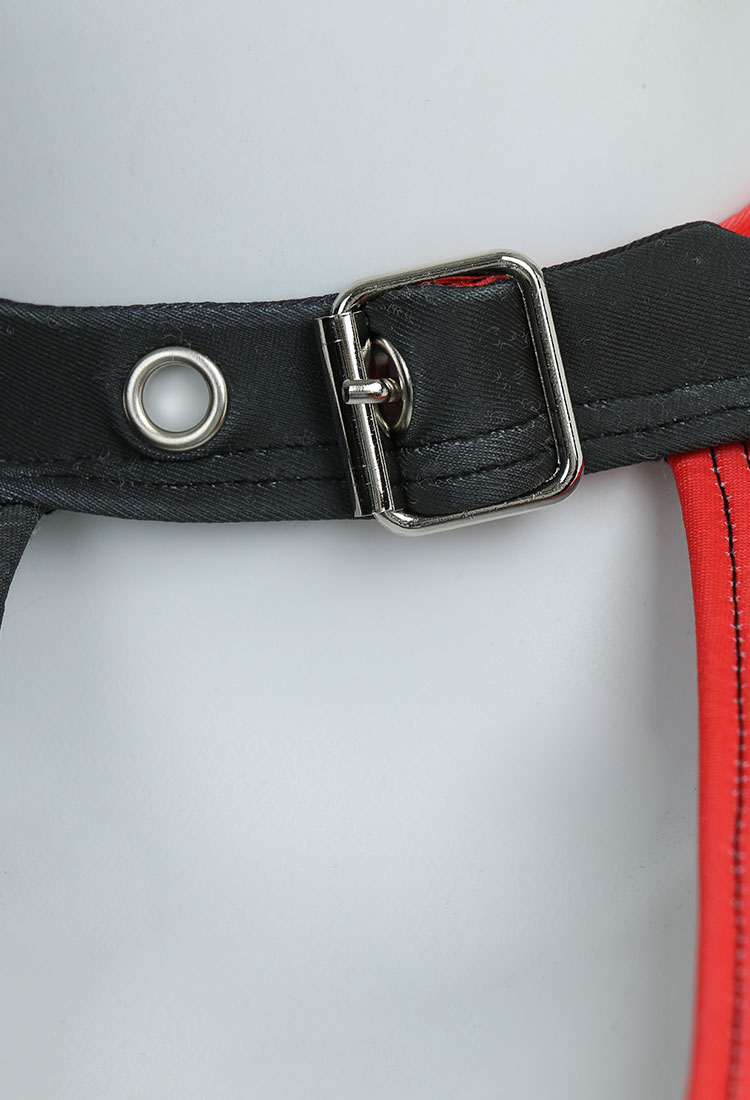- The two-piece swimsuit features a unique half-face print of Emily and black cat, halter neck, black and red contrast color and high waist bottom.