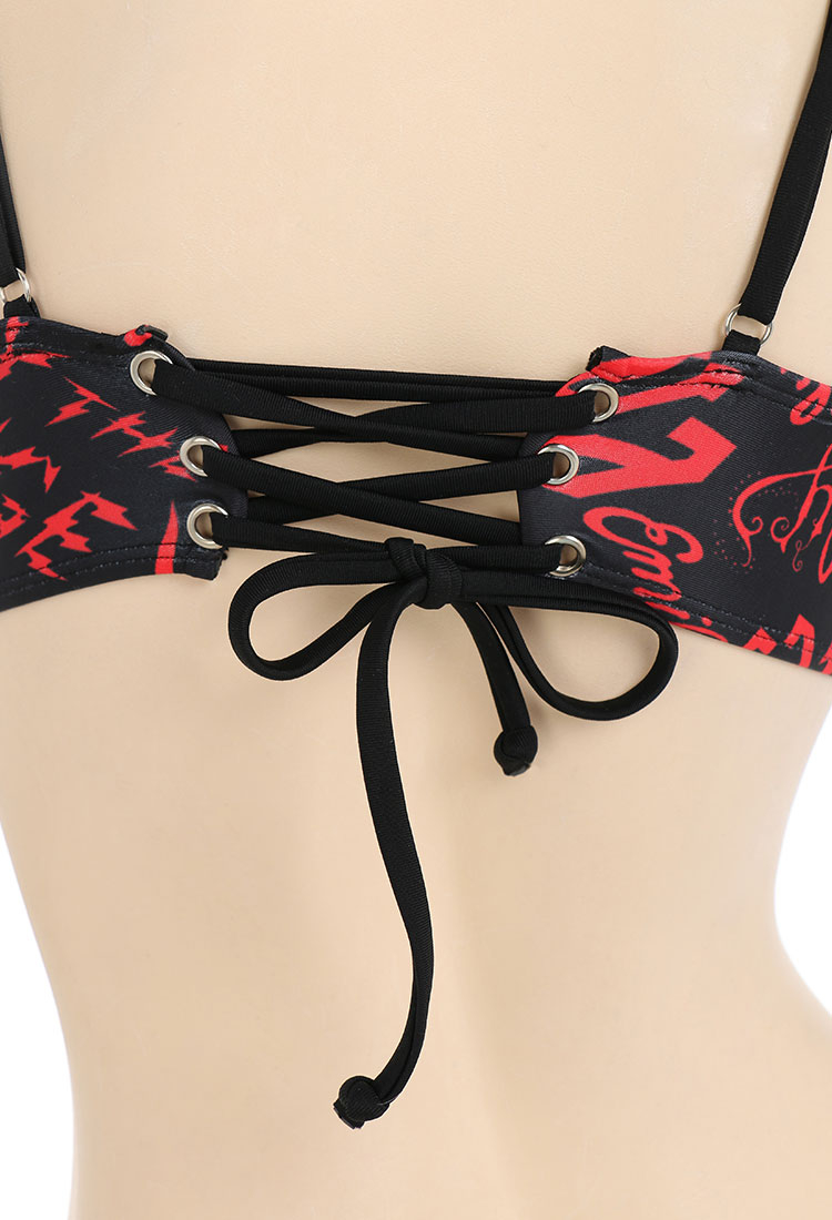 [Officially Licensed] Emily the Strange Shadow Chic Two-Piece Swimsuit Print Halter Pentagram Top and Lace-up Bottom