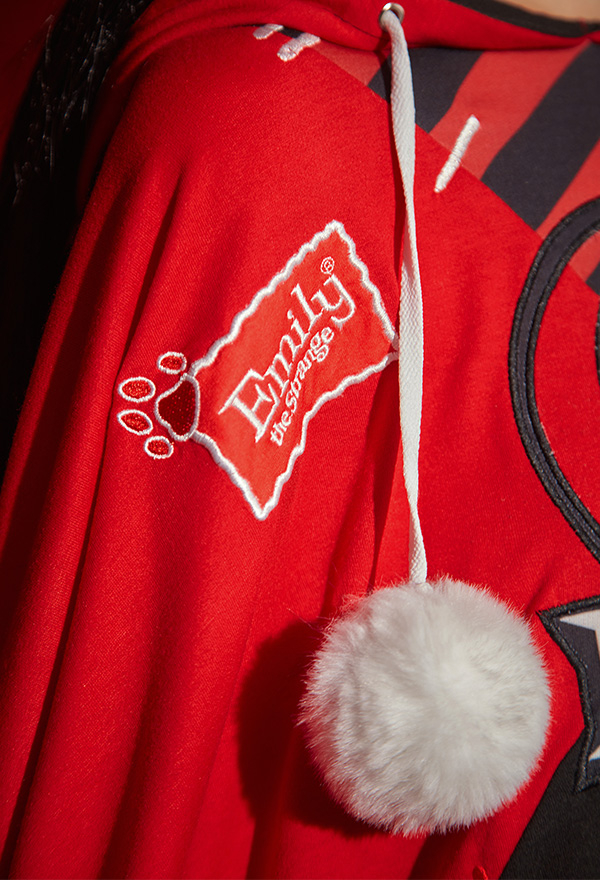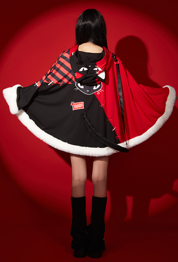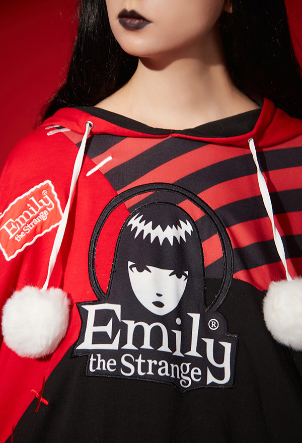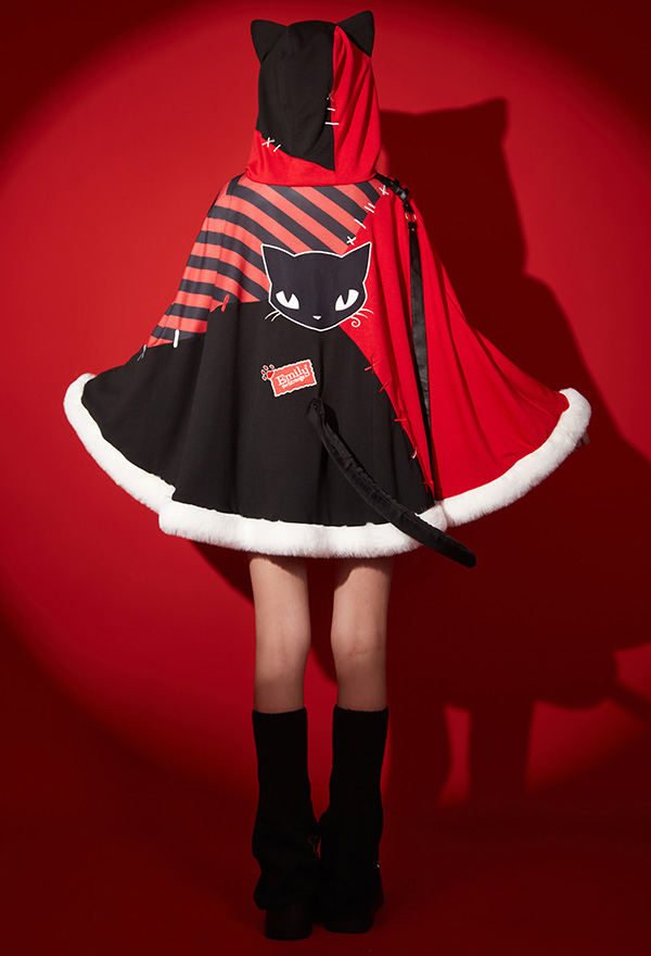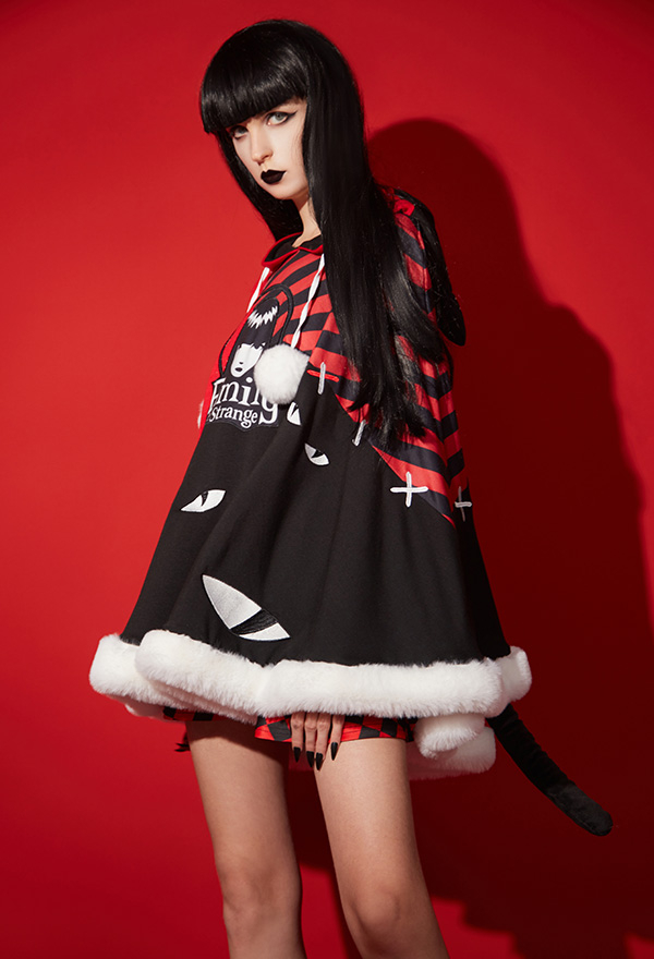 [Officially Licensed] Emily the Strange Striped Plush Hem Print Hooded Halloween Cloak Costume