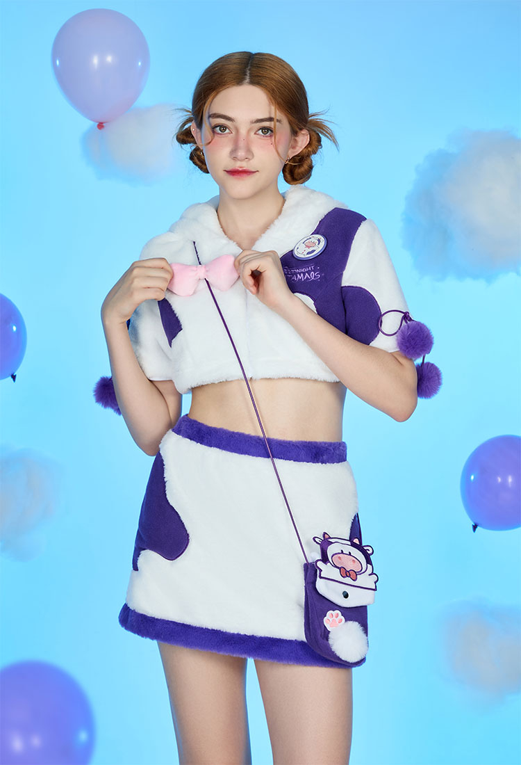 [Officially Licensed] Goodnight Pajamals x Micotaku Cow Momo Plush Paw Hoodie Skirt Set Daily Wear