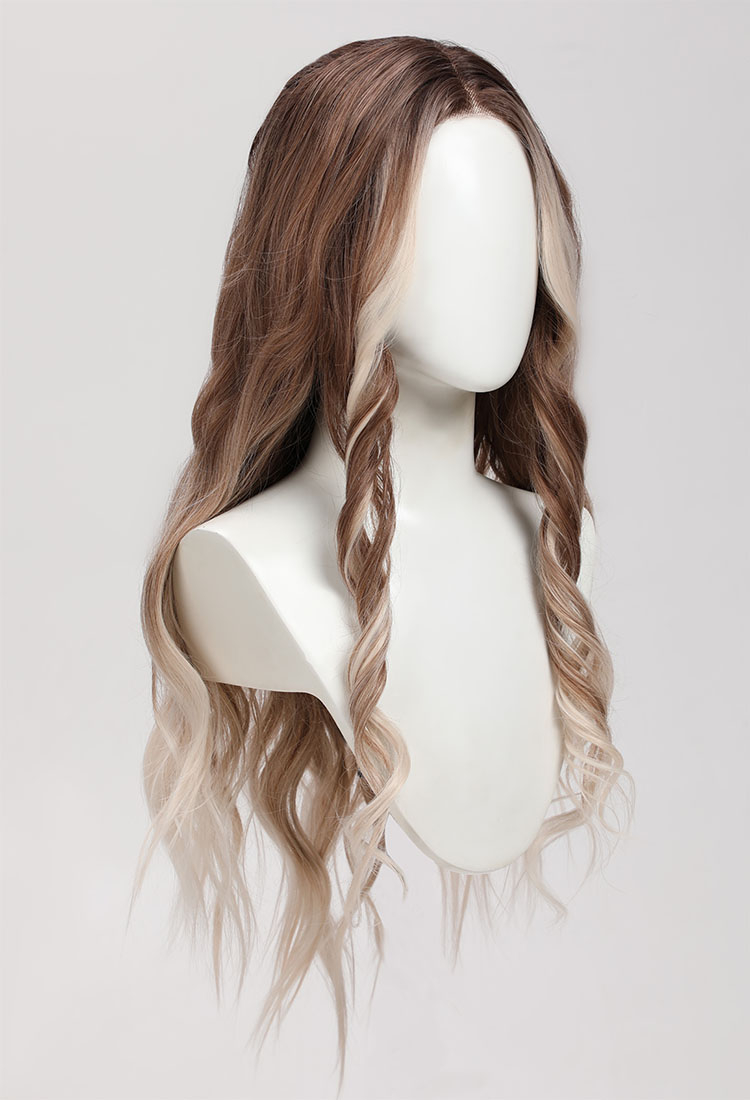 [Officially Licensed] Handmade White Grey Curly Middle Apart Long Brown Wig Women