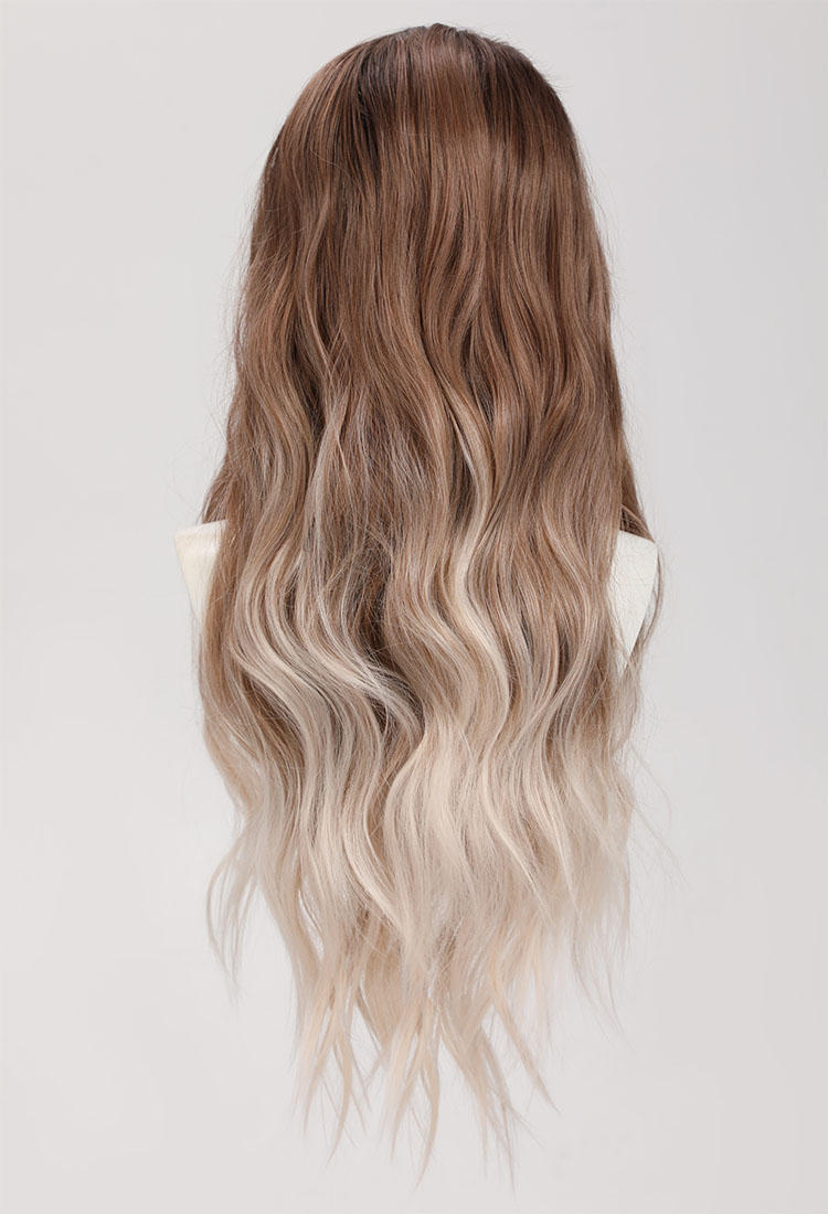 - The brown wig boasts a faded white color on the ends, creating a beautiful and trendy ombre effect. Made with high-quality synthetic fibers, this wig is soft, silky, and natural-looking.
