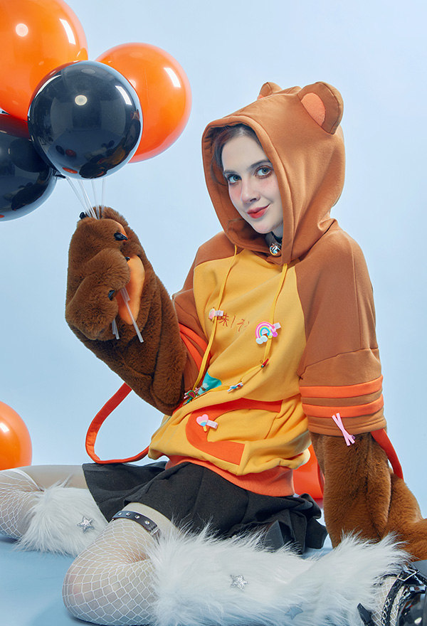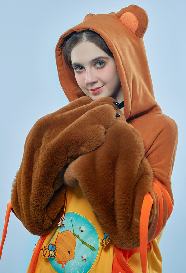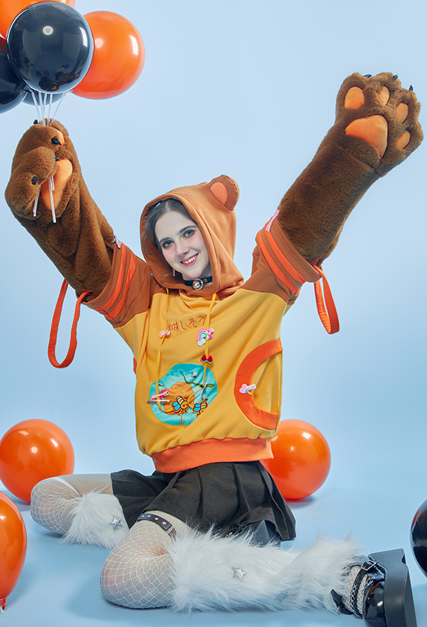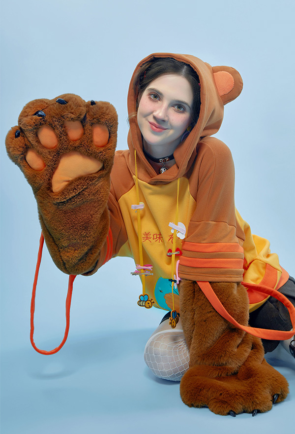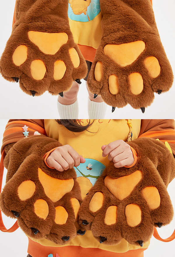 - 1. Special Design - The detachable bag design plush paw is the highlight of this hoodie. The two long-sleeved paw gloves can be detached and used as two bags.