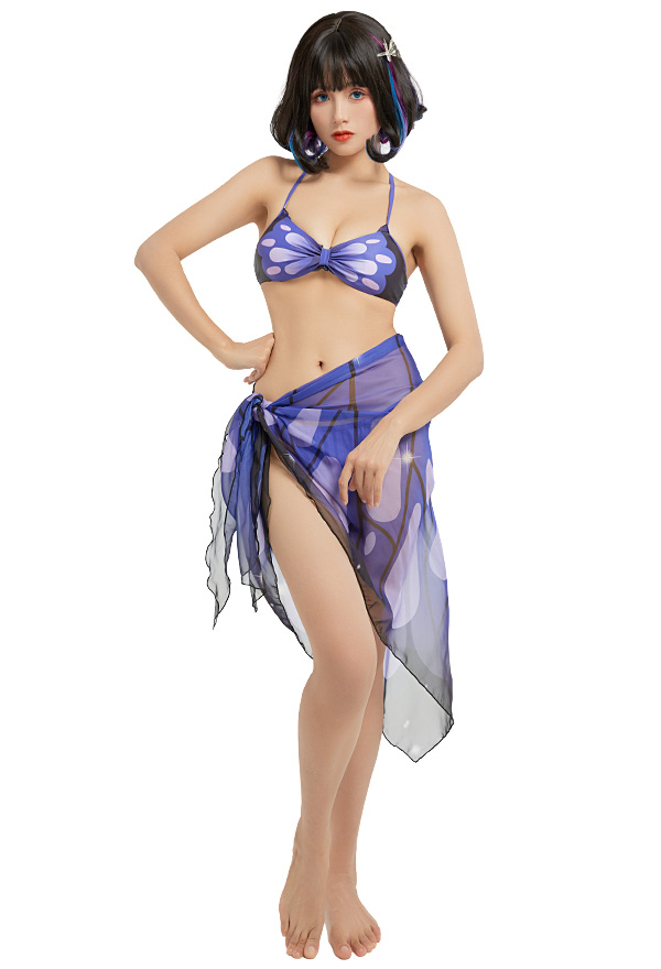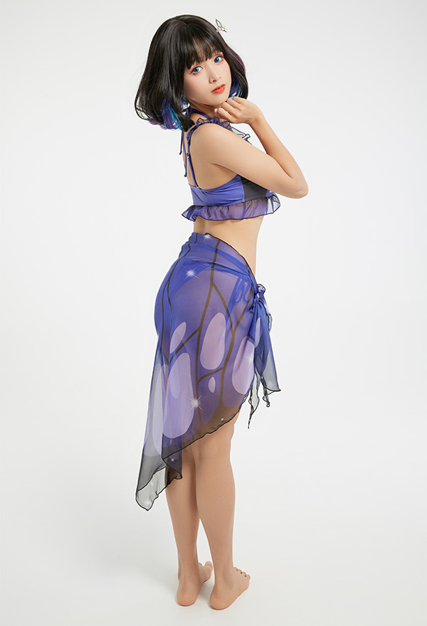 - This Cute Butterfly Purple Halter Cheeky String Bikini Set is your best choice for summertime.