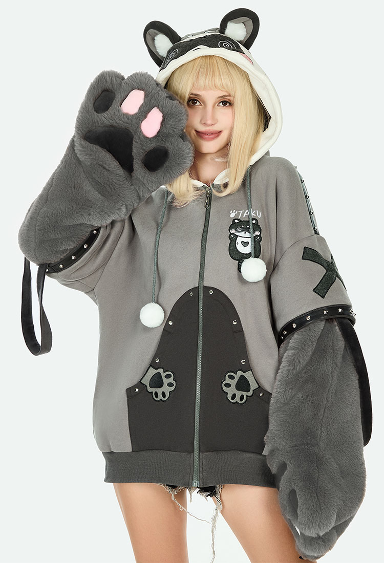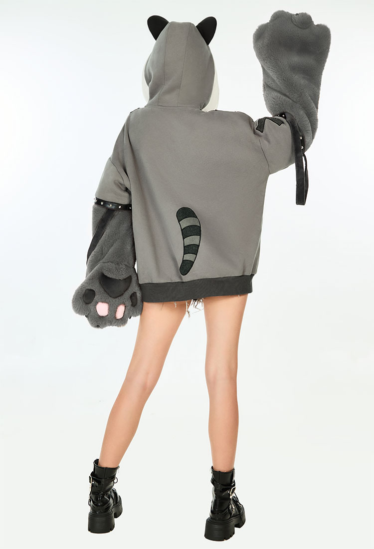 - Stay cozy and stylish with the Micotaku Raccoon Black and Gray Paw Hoodie. This trendy hoodie features a unique design with adorable raccoon paw sleeves, adding a playful touch to your daily wear.