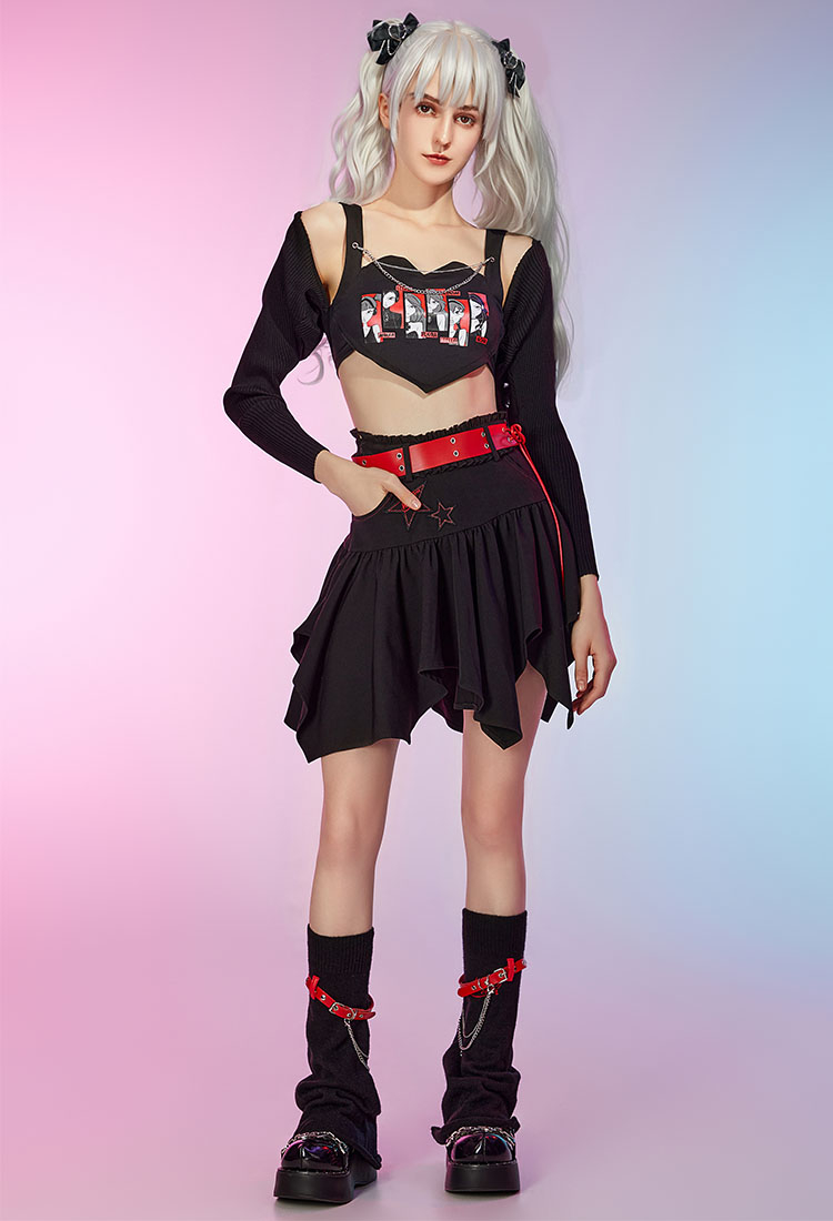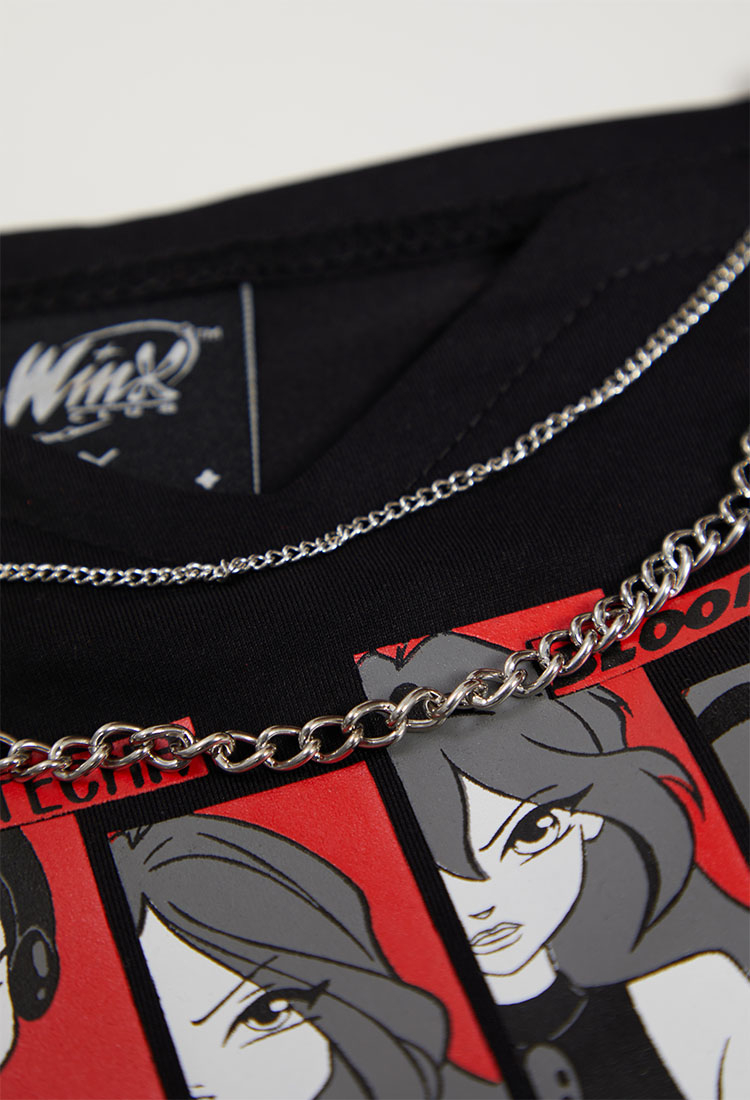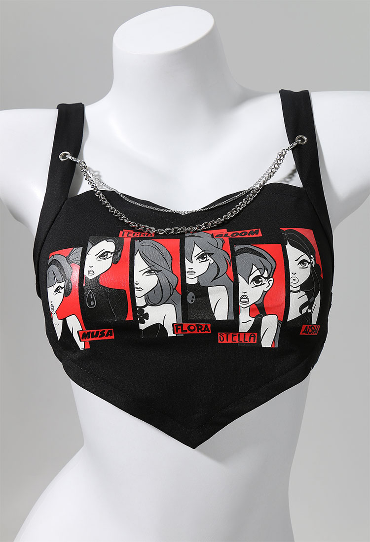 - Black sleeveless camisole featuring Winx girls graphic at front