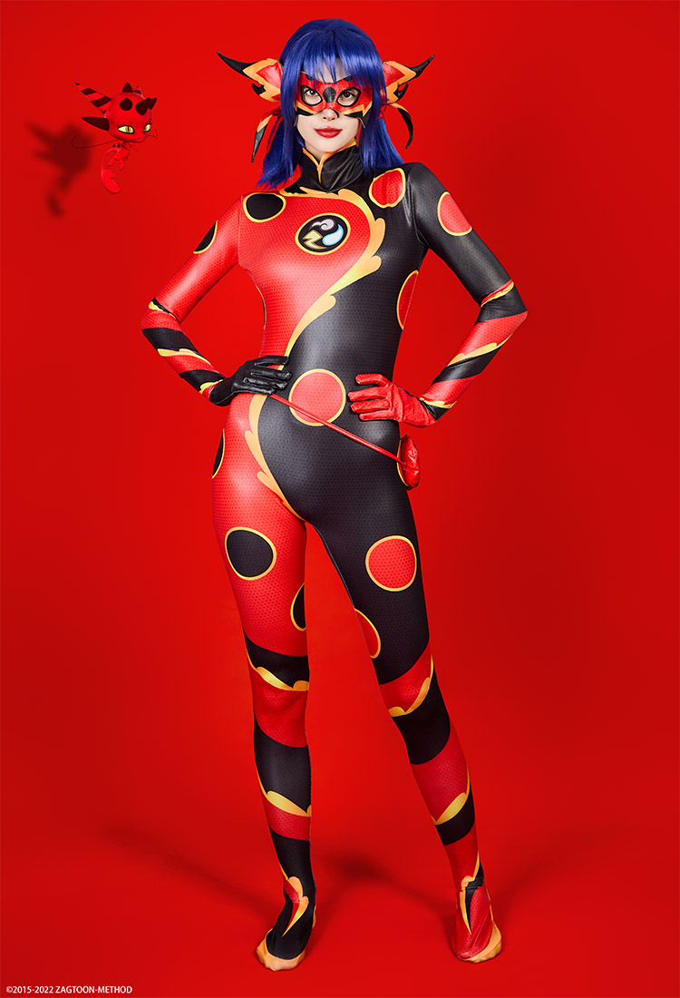 Officially Licensed Miraculous Ladybug Dragon Bug Cosplay Costume | Black and Red Bodysuit for Halloween Costume