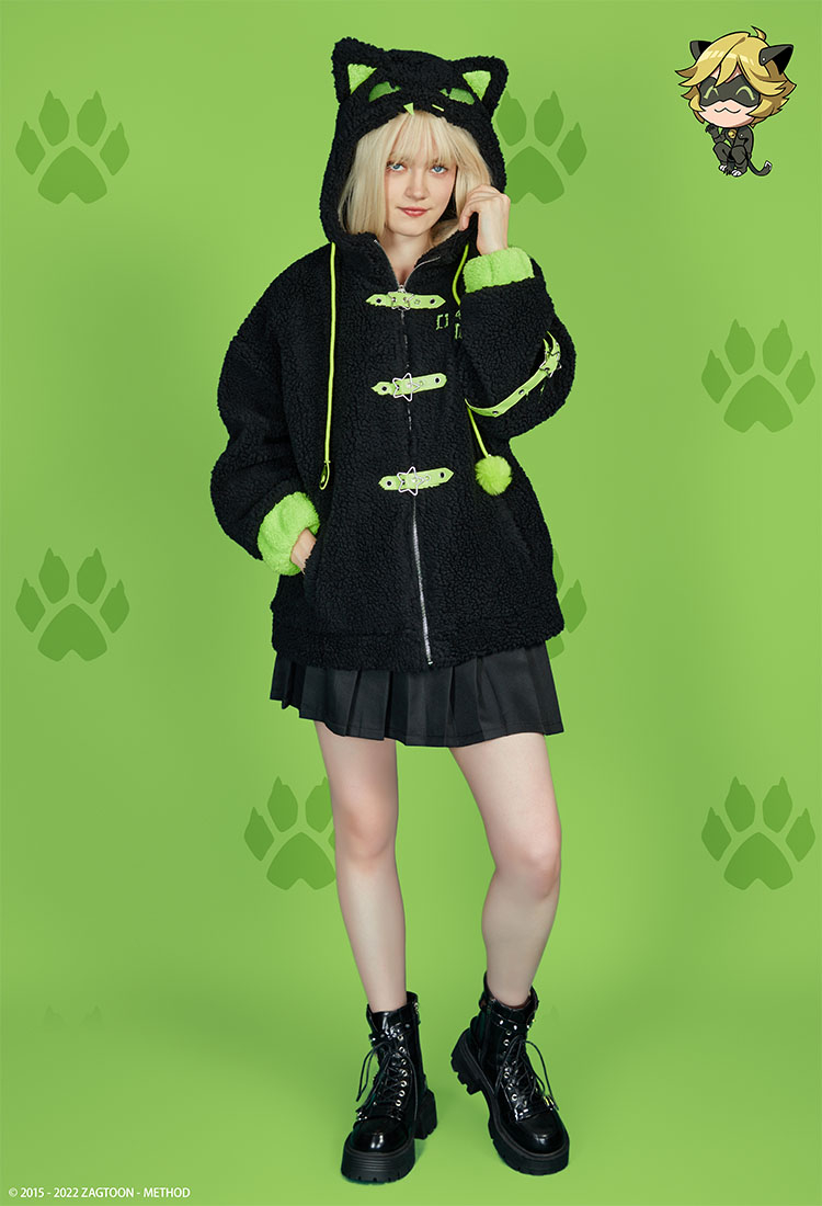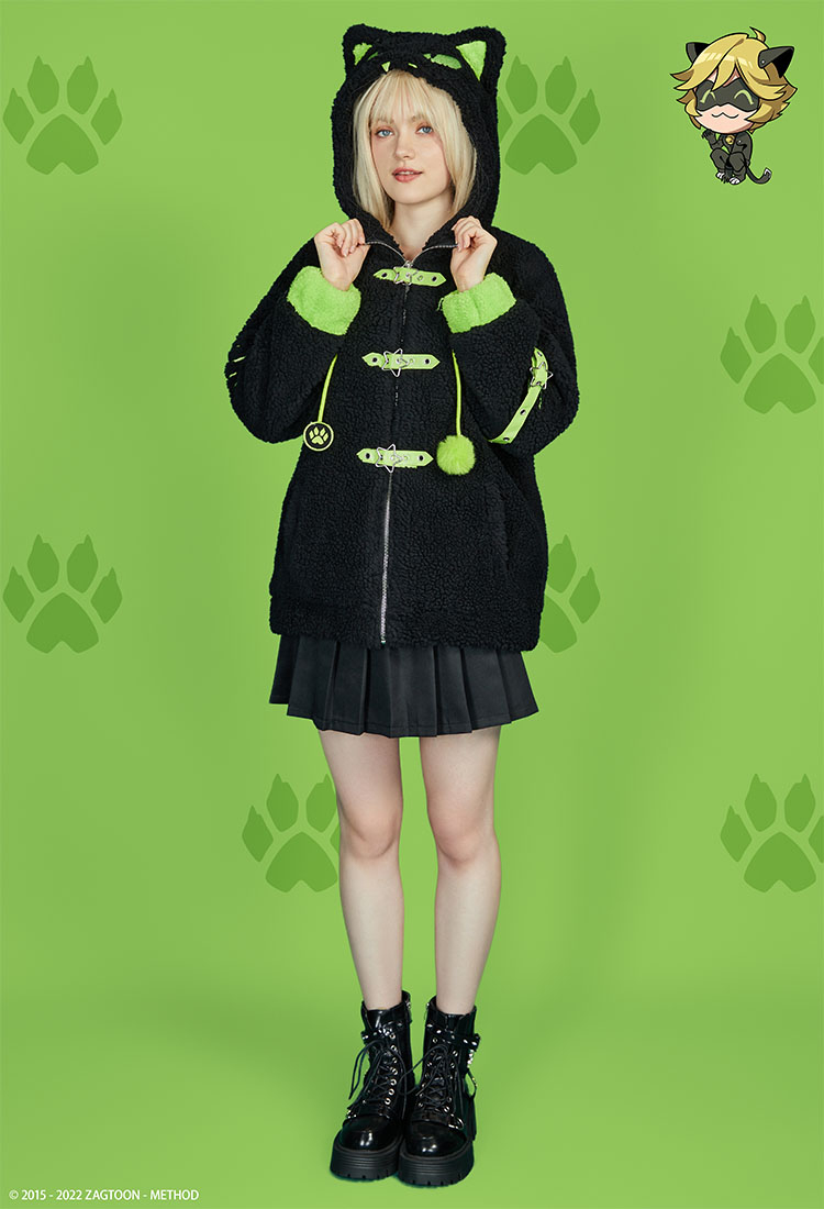 - This hooded jacket features Cat Noir, complete with his signature "Claws Out" pose.