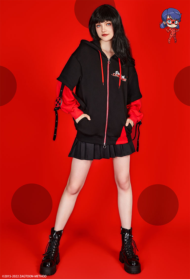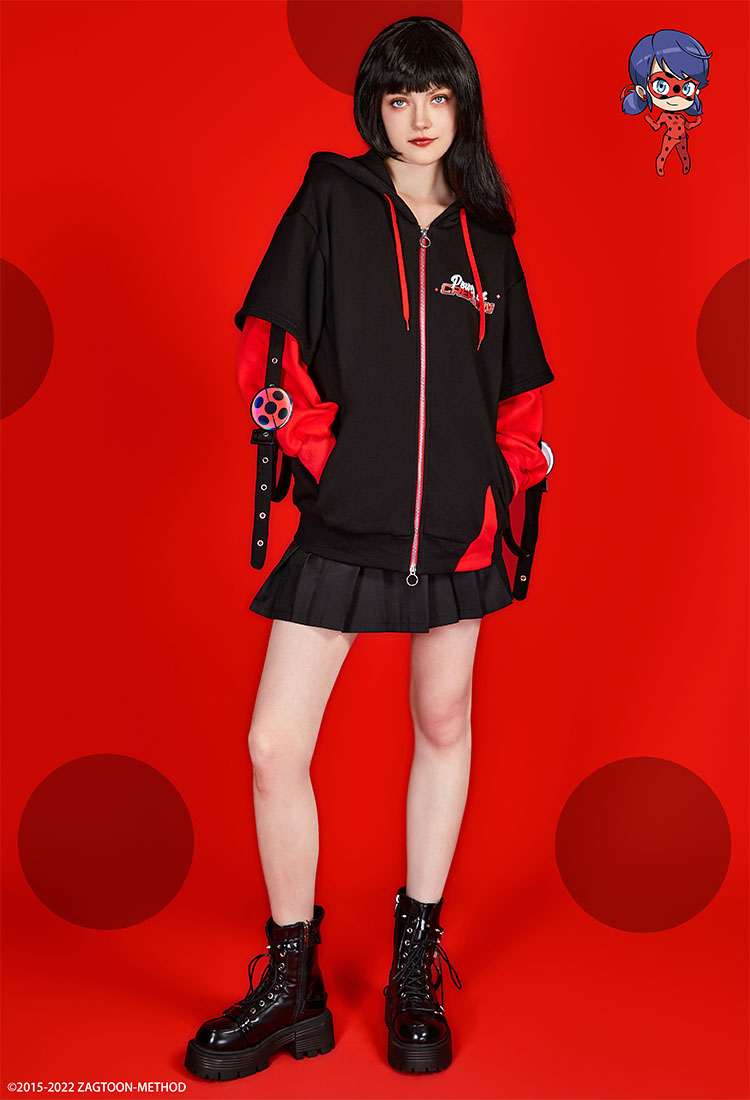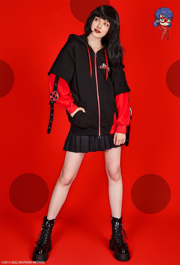 - This hoodie is crafted from high-quality fabric that is soft and comfortable for daily wear. Drawing inspiration from the Miraculous Ladybug. The design highlight is a small badge in the shape of a ladybug on the sleeve.