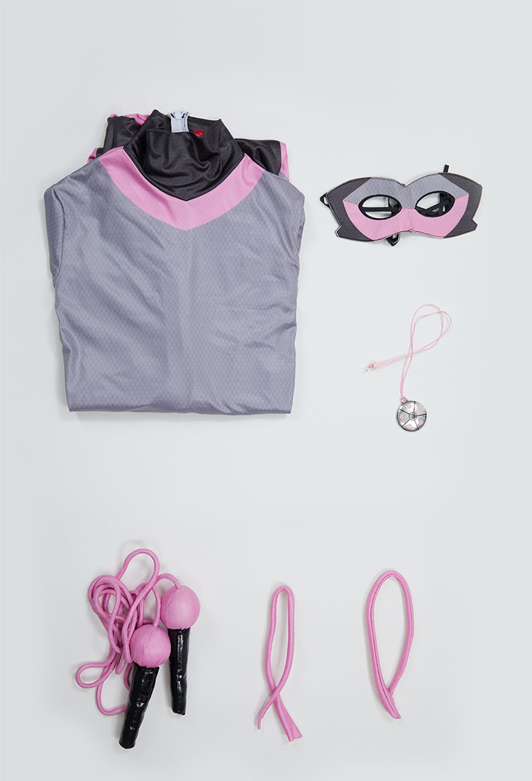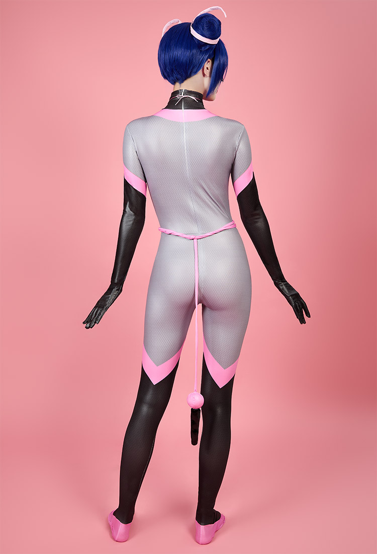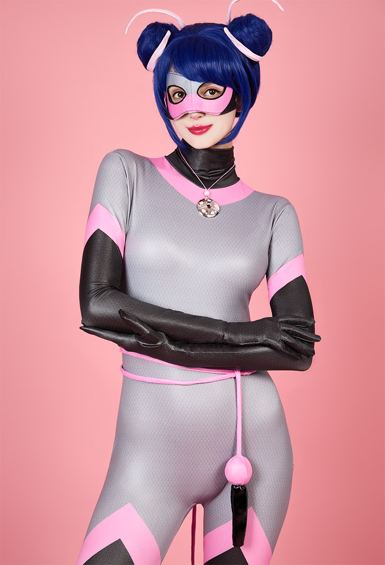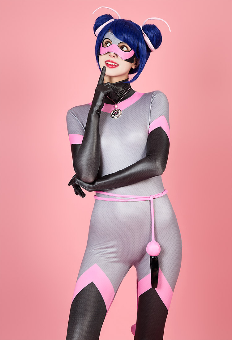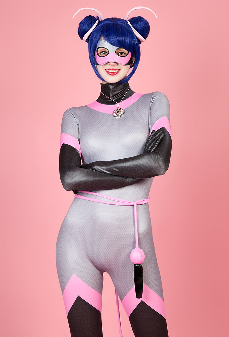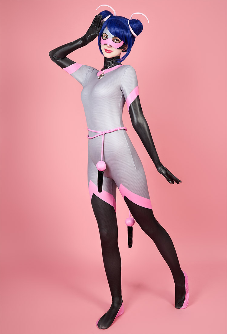 Officially Licensed Miraculous Ladybug Multimouse Cosplay Costume | Grey and Pink Elastic Jumpsuit for Halloween Costume