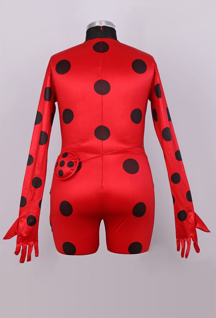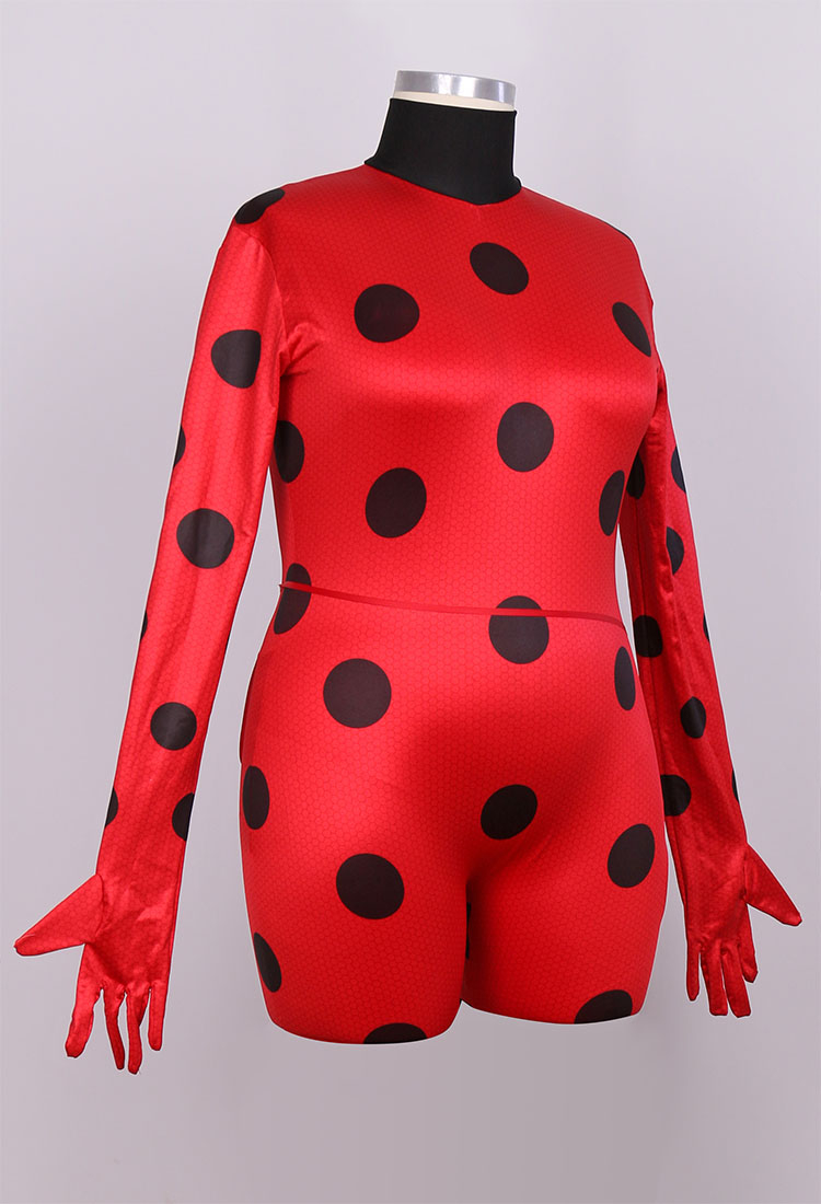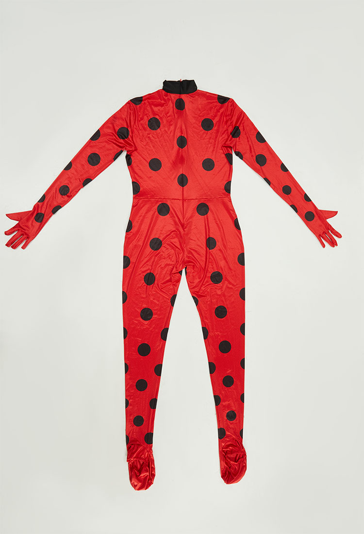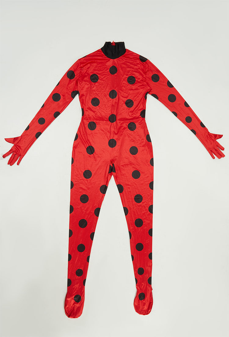 - Miraculous Ladybug screen printing cosplay costume featuring polka dot printing front and back