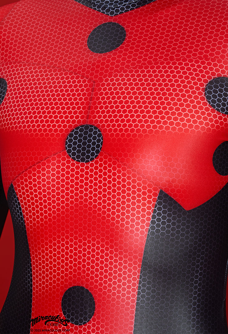 Officially Licensed Miraculous Mister Bug Cosplay Costume | Black And Red Elastic Jumpsuit for Halloween Costume