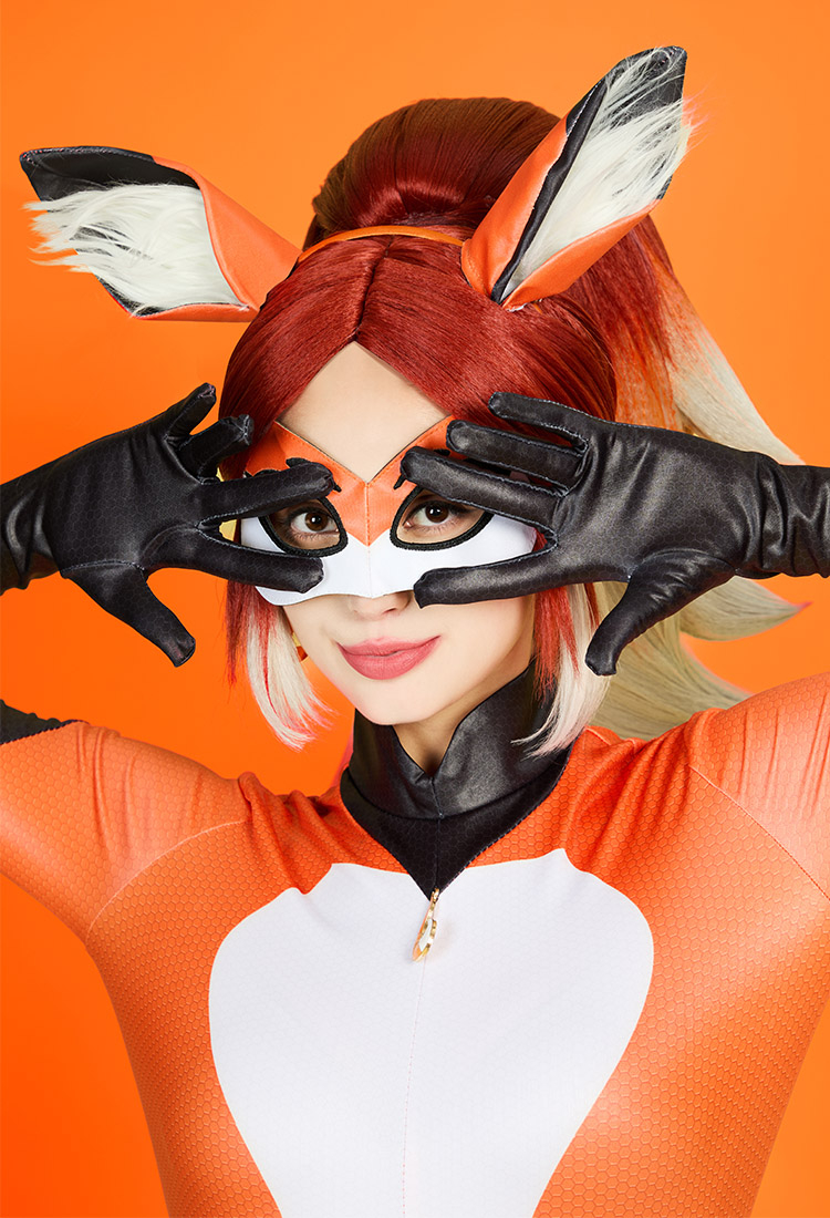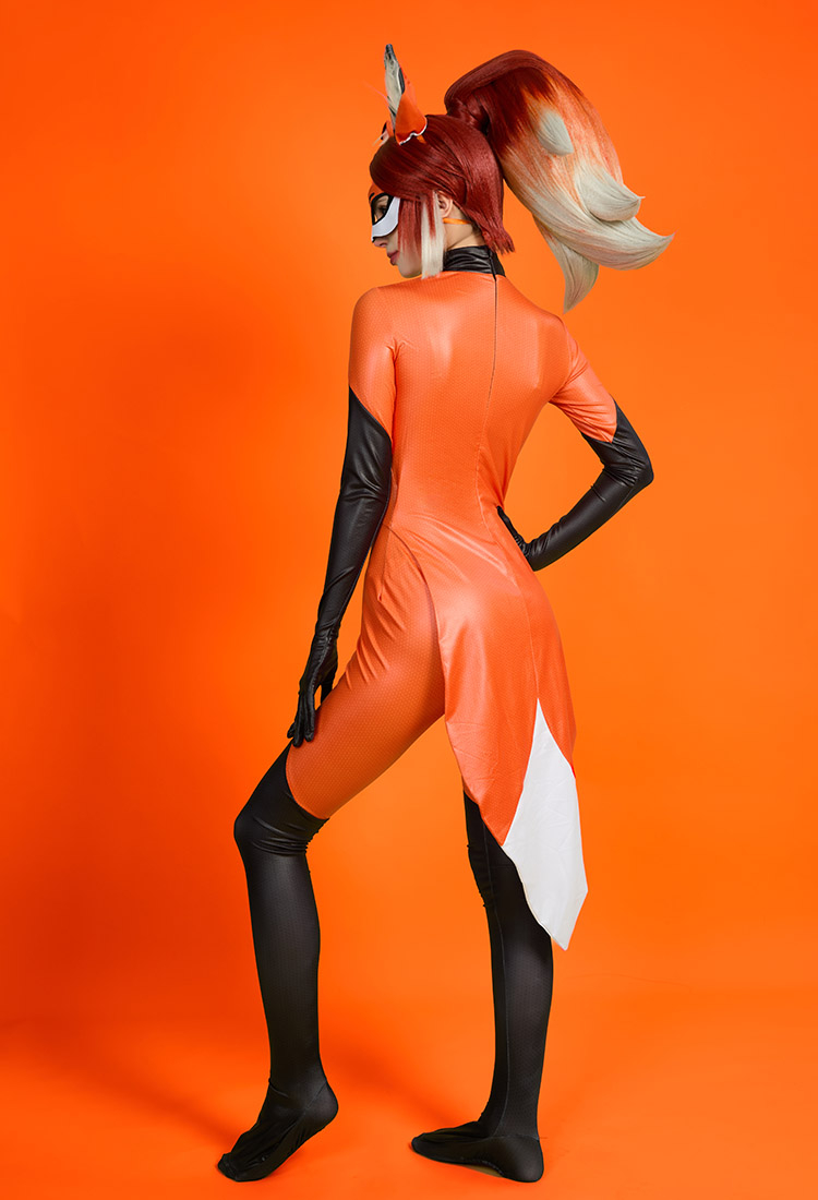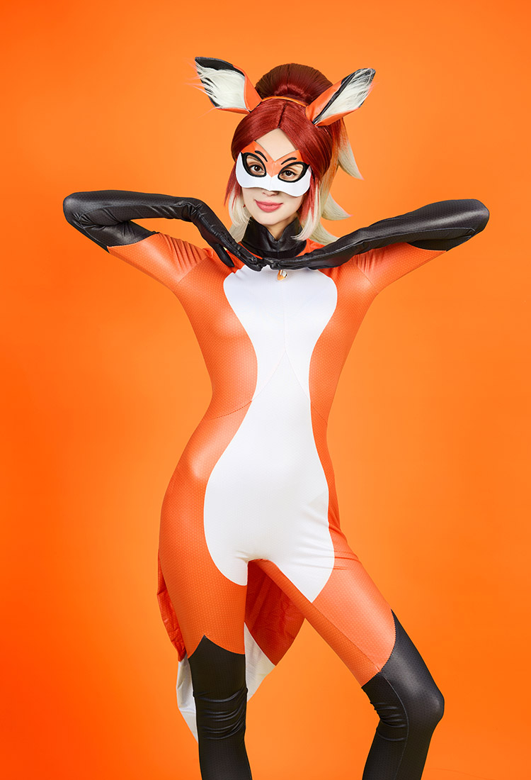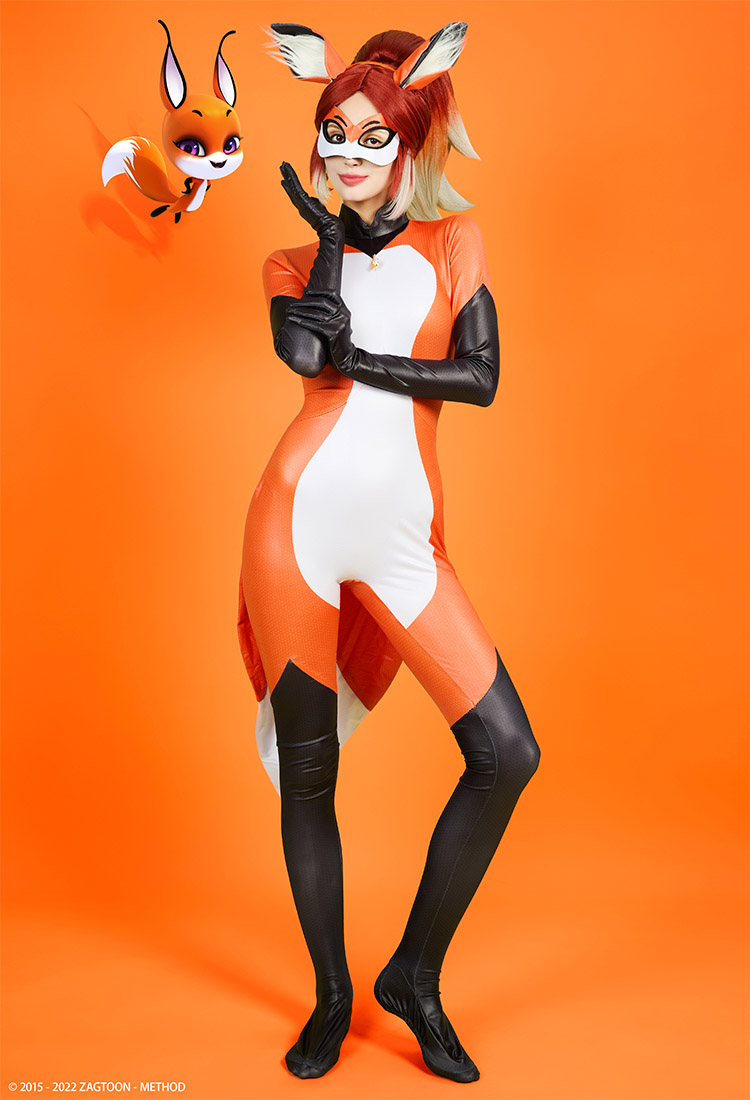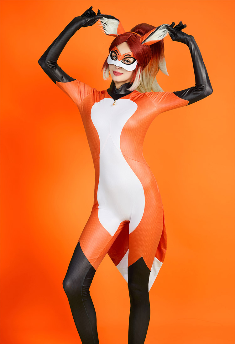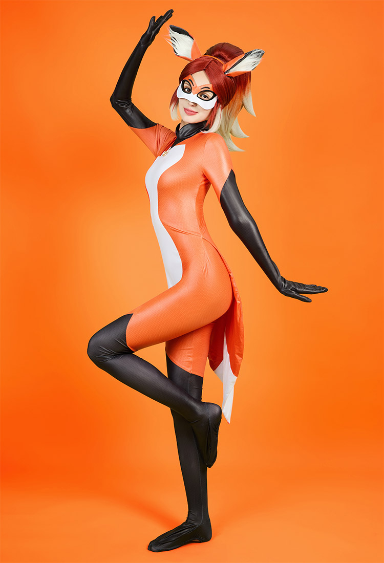 Officially Licensed Miraculous Rena Rouge Cosplay Costume | Orange and White Elastic Jumpsuit for Halloween Costume