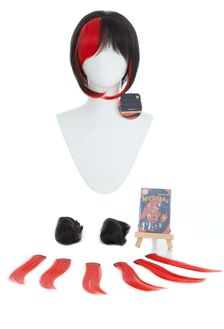 - includes: The main wig, a pair of hair bundles, and 6 red hairpieces (2 of them are spare).
