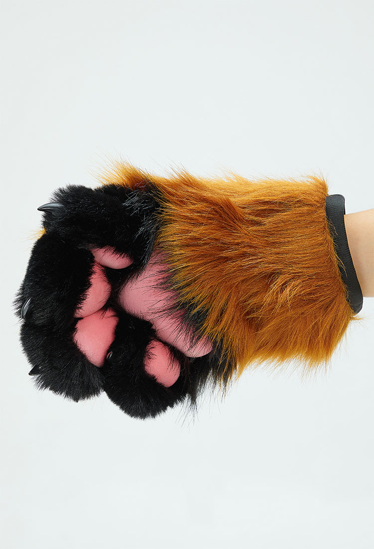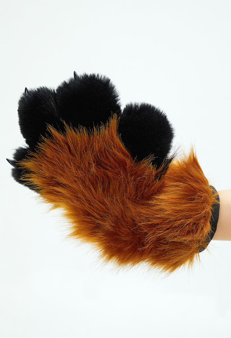 Micotaku Plush Furry Paw Gloves Fursuit Accessory Brown and Black Kitten Paws