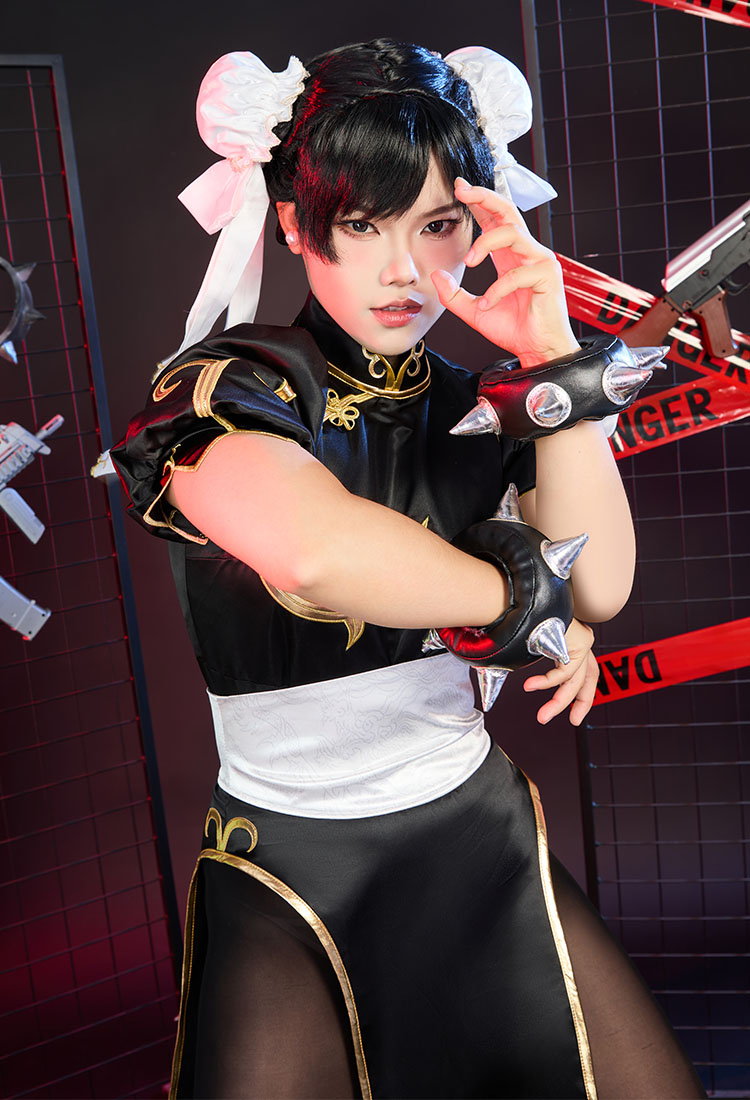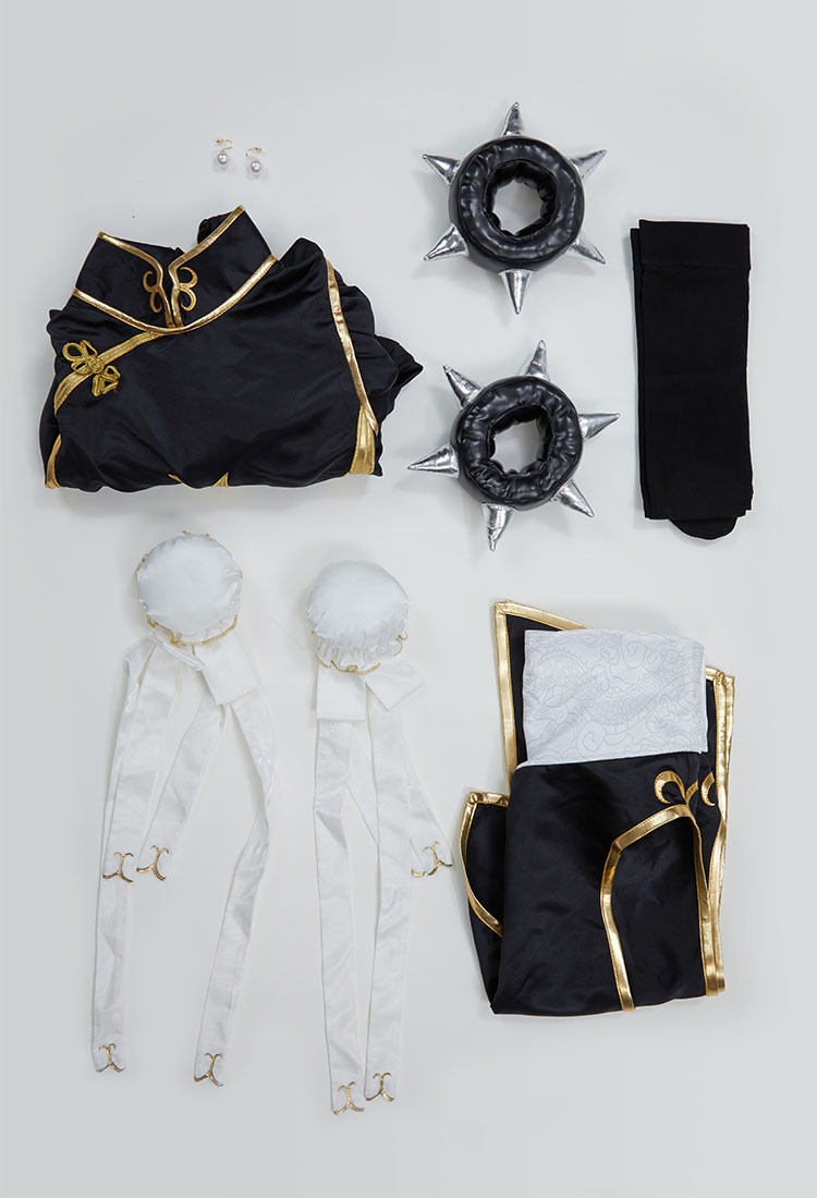 - This stunning ensemble includes the traditional black cheongsam, complete with intricate details to capture Chun-Li's essence perfectly.
