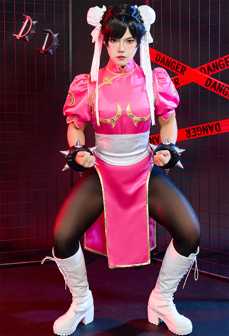 Officially Licensed Street Fighter Classic Chun-Li Pink Cosplay Costume Halloween Costume
