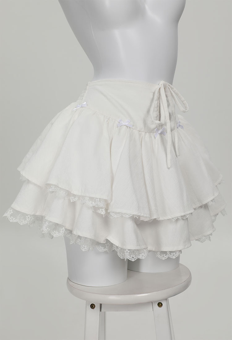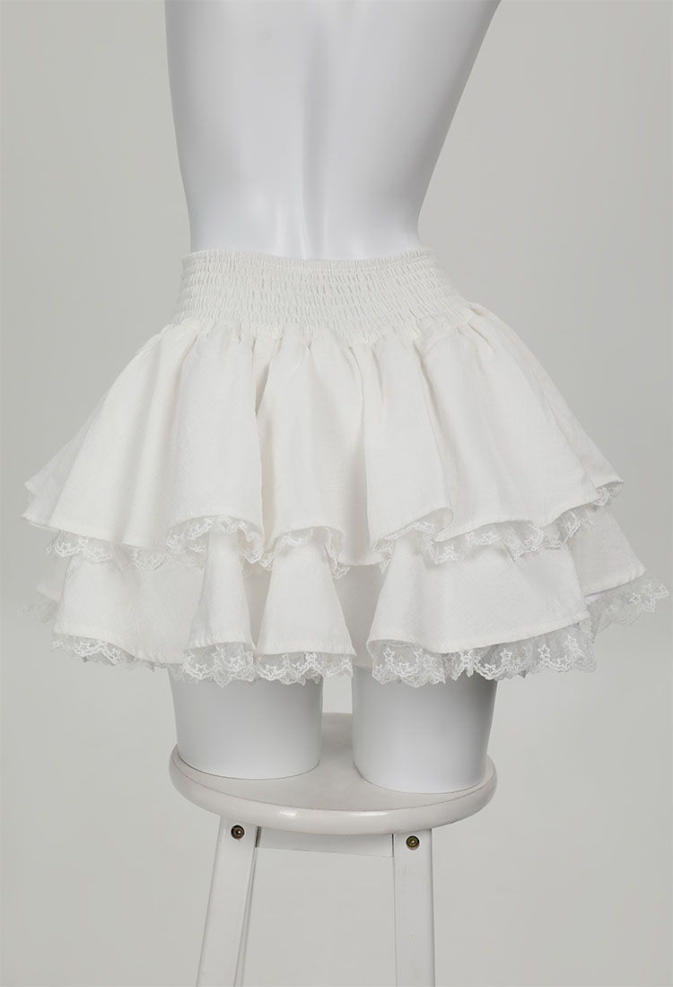 White Cotton Double Layered Skirt Lace Women Daily Wear