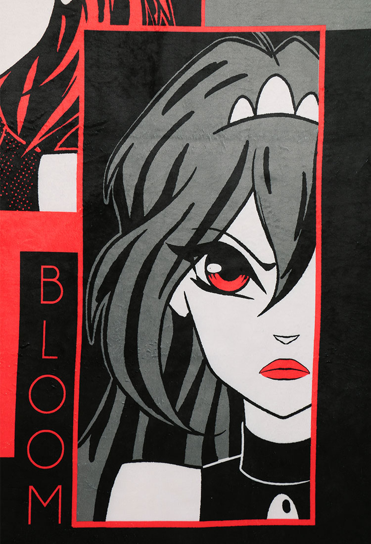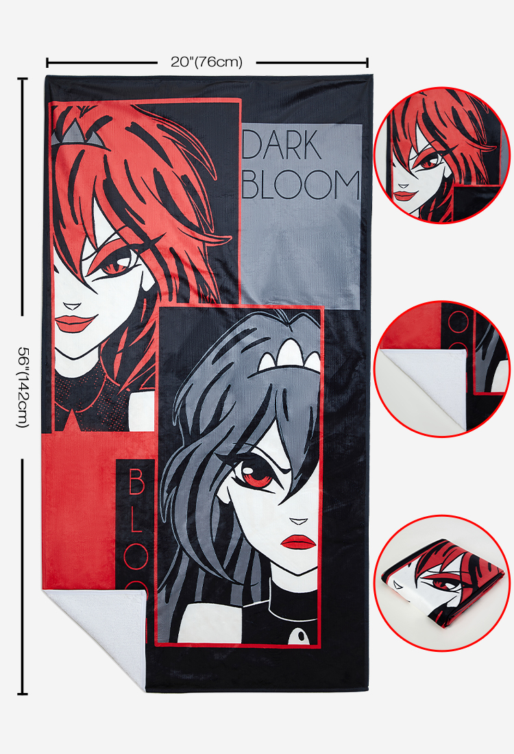 - This beach towel features dark bloom and bloom print, epitomizing the clash between righteousness and malevolence in the realm of Winx Club.