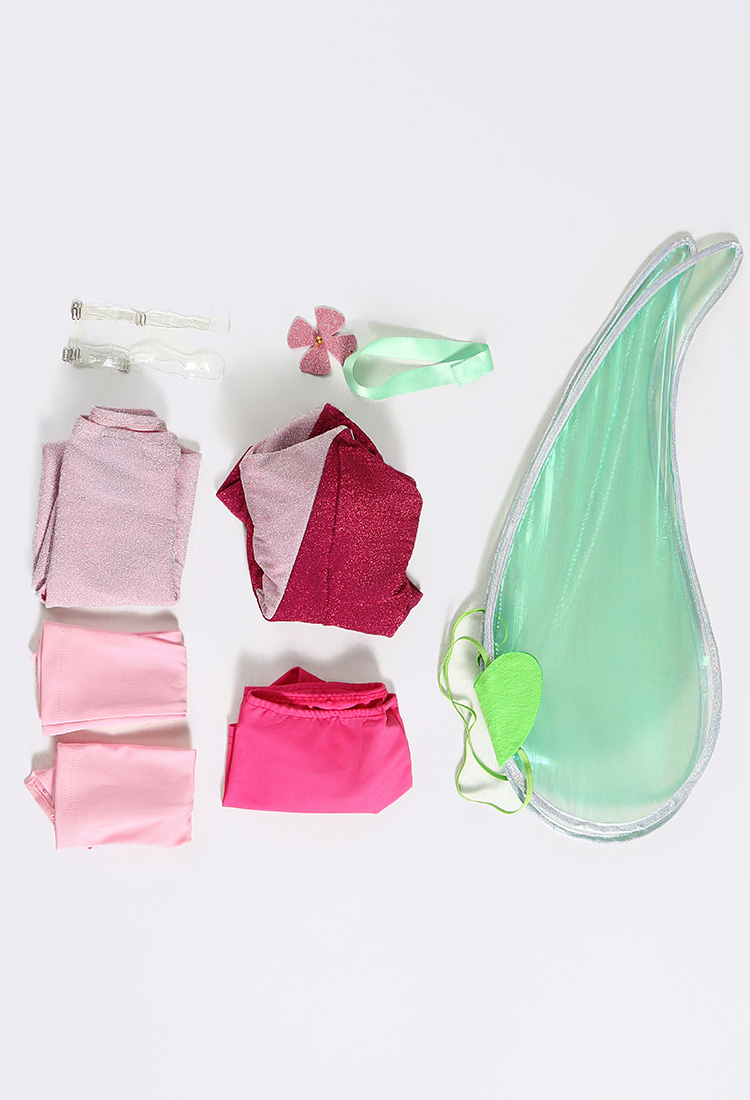 Officially Licensed Winx Club Flora Cosplay Halloween Fairy Costume | Pink Tops and Skirt with Fairy Wings