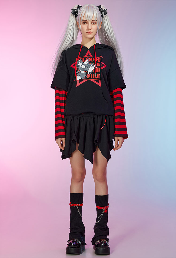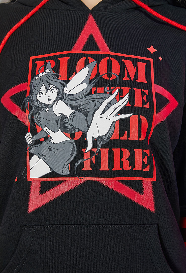 Officially Licensed Winx Club Bloom Costume Print Hoodie Long Sleeved Black Red Stripe Daily Wear