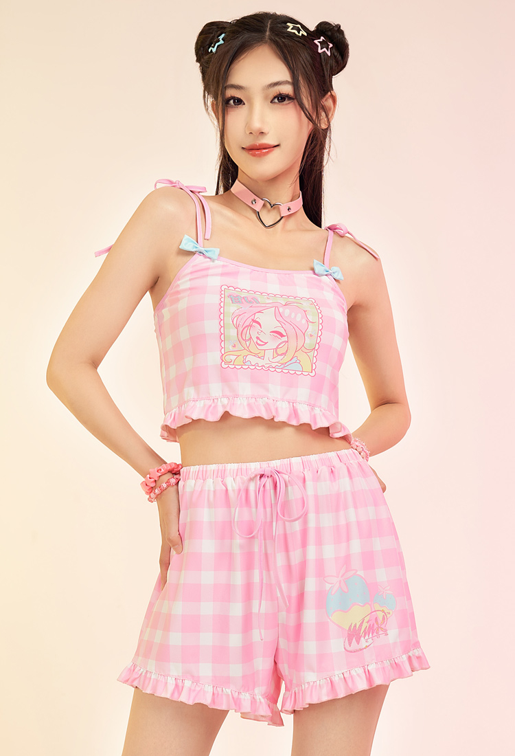 Officially Licensed Winx Club Flora Costume Women's Loungewear | Cami Top and Shorts with Choker Summer Two-Piece Pajamas Set