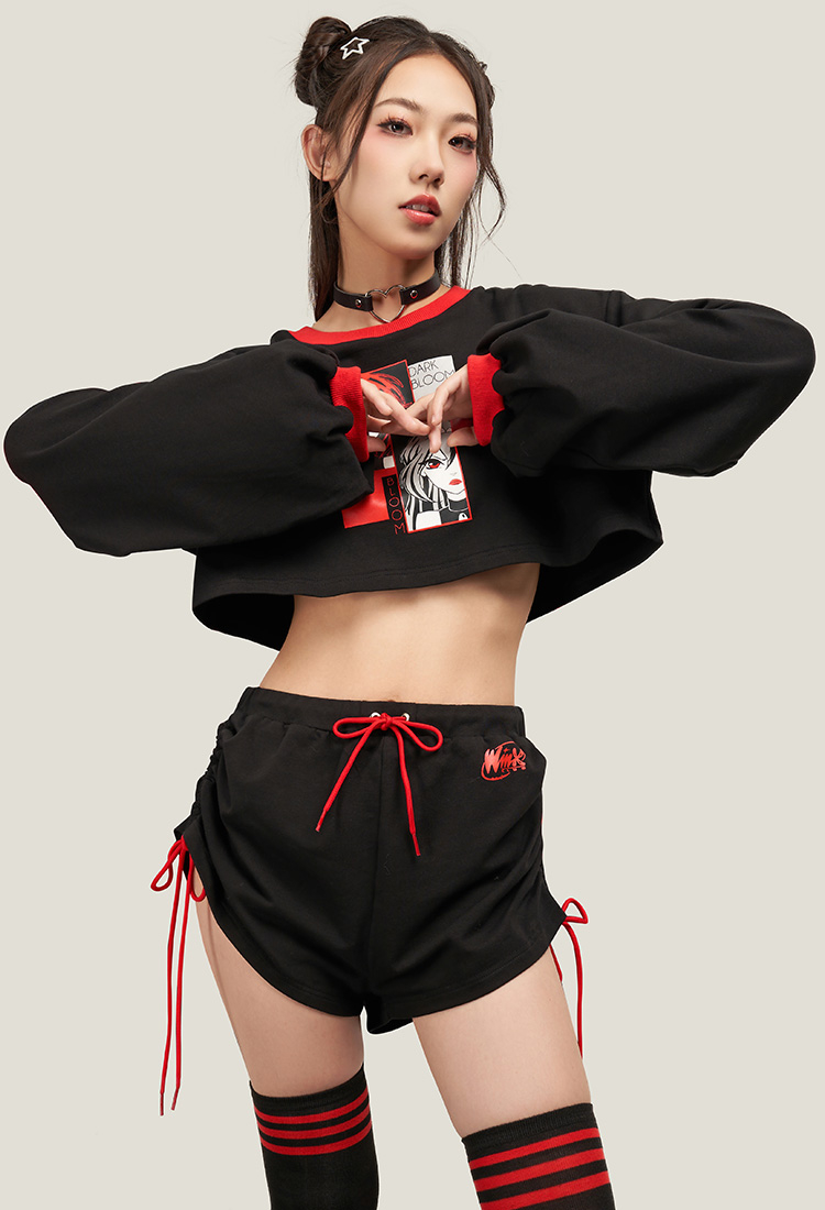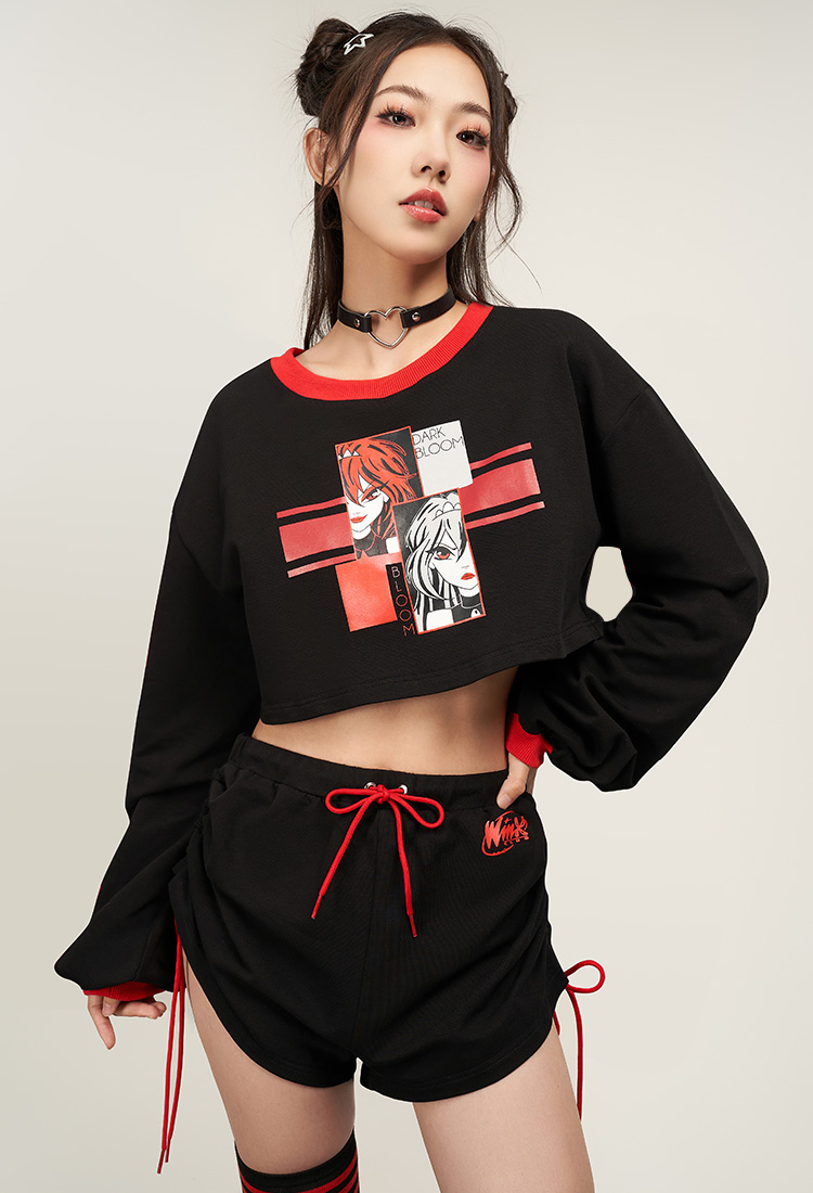 Officially Licensed Winx Club Bloom Costume Women’s Loungewear | Black Crop Top and Drawstring Shorts Duo
