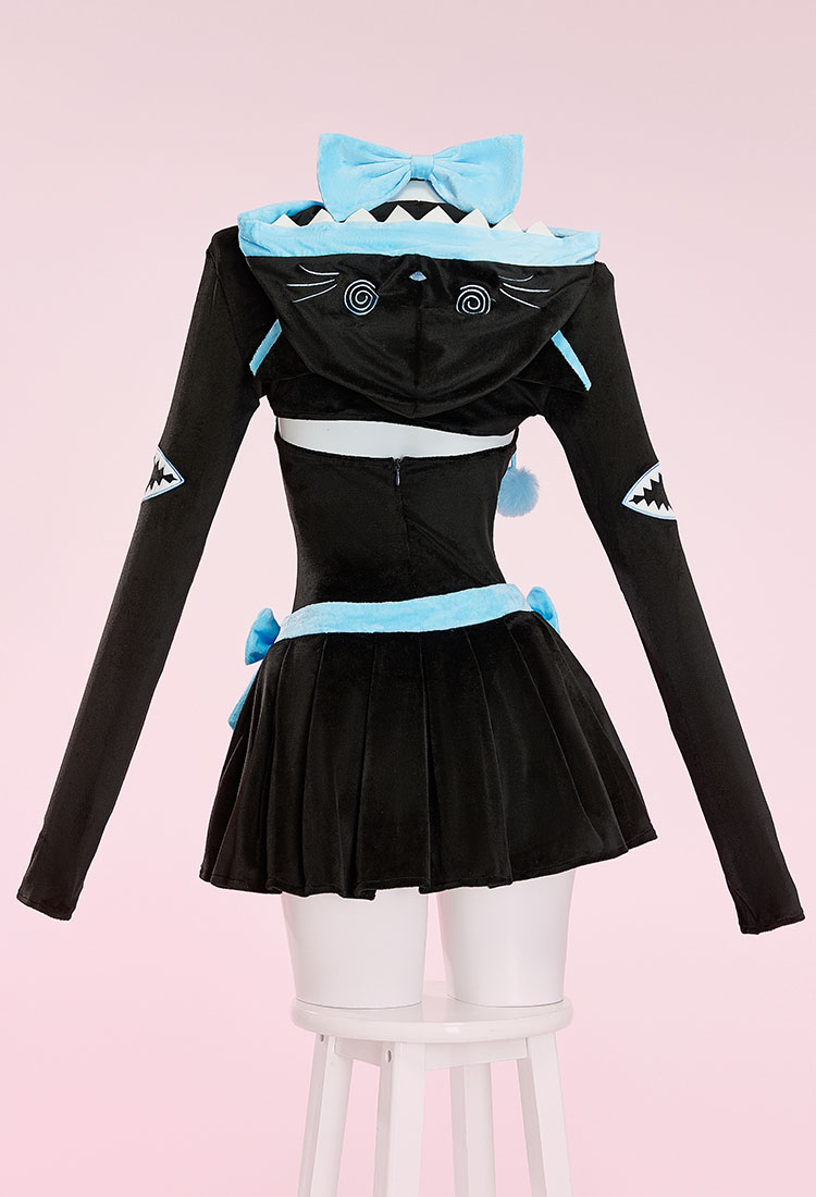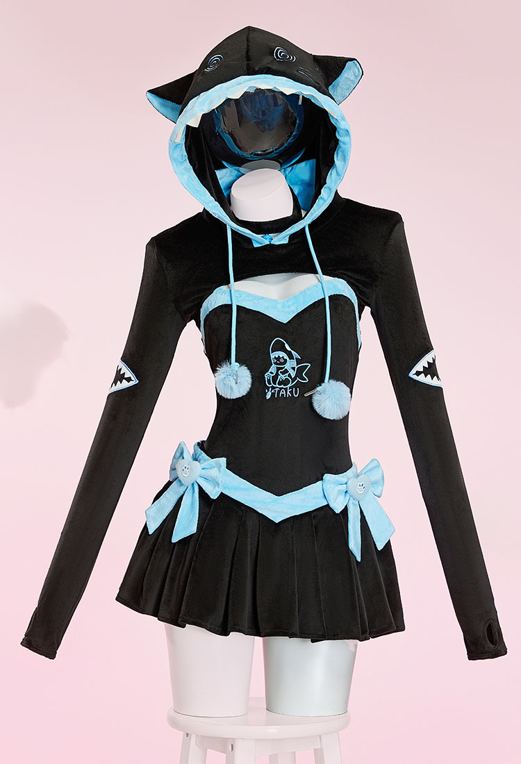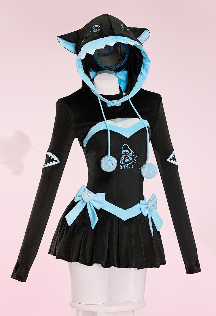 Micotaku Shark Hoodie Dress with Removable Bows & Embroidered Details