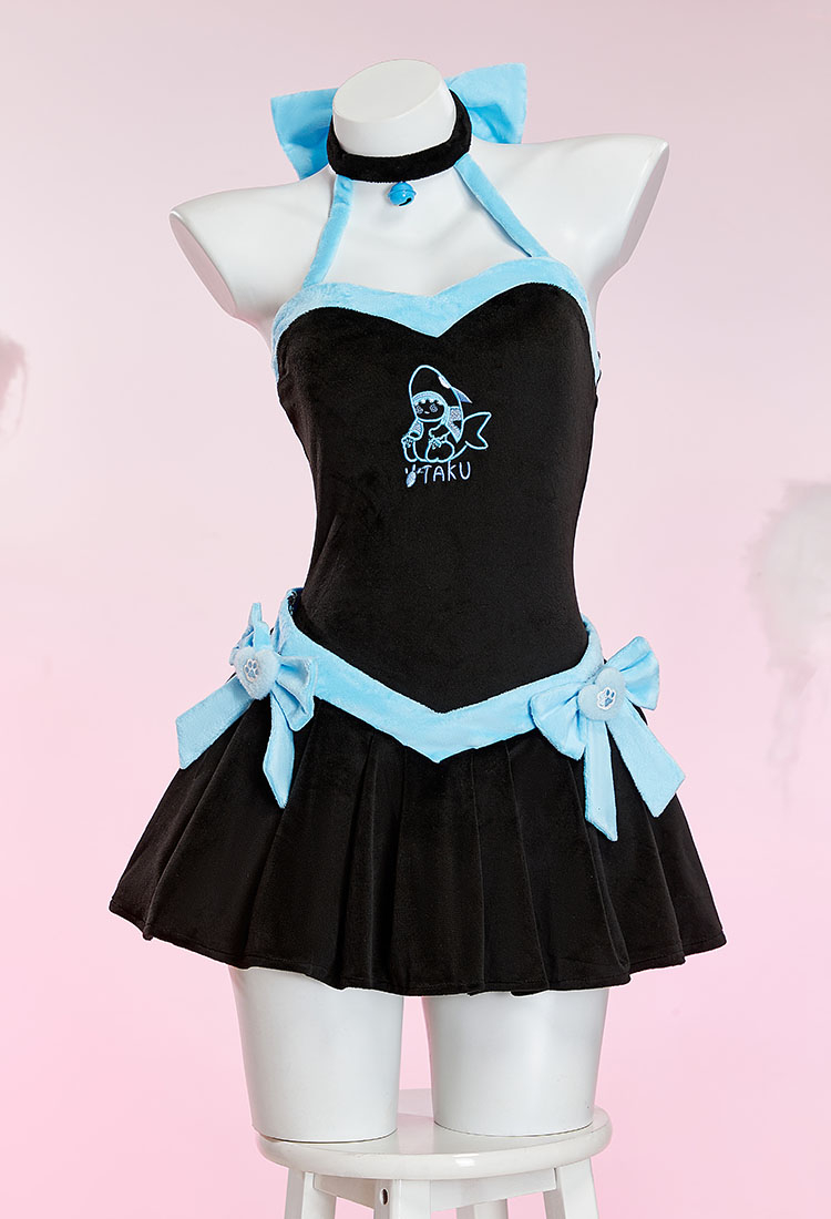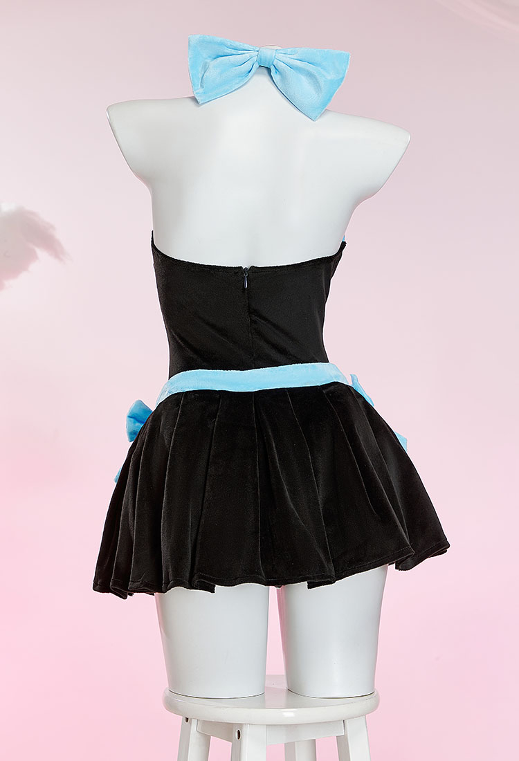 - Designed for versatility, the dress includes detachable decorative bows that can be repositioned to suit your style. A flattering pleated skirt and a chest cutout add dimension while maintaining a fun, whimsical aesthetic.