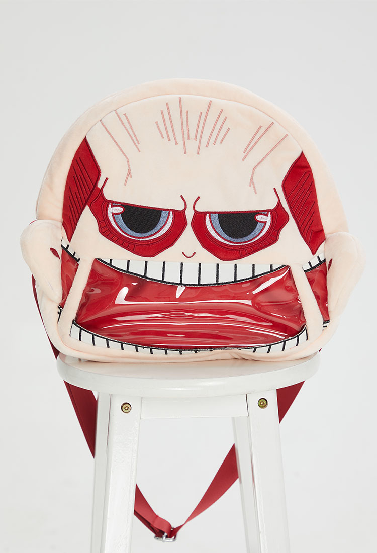 Unleash your fandom with the Officially Licensed Attack on Titan Colossal Titan Ita Bag – a fusion of anime menace and collector utility. The bag’s gaping maw design features hyper-detailed embroidery that captures the Titan’s terrifying visage, while the transparent PVC panel showcases your prized anime pins, badges, or mini figurines with museum-like visibility.