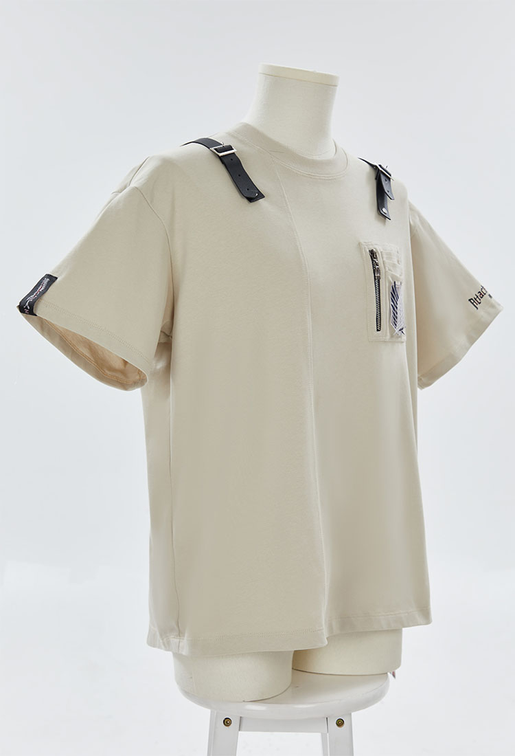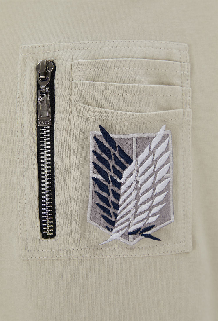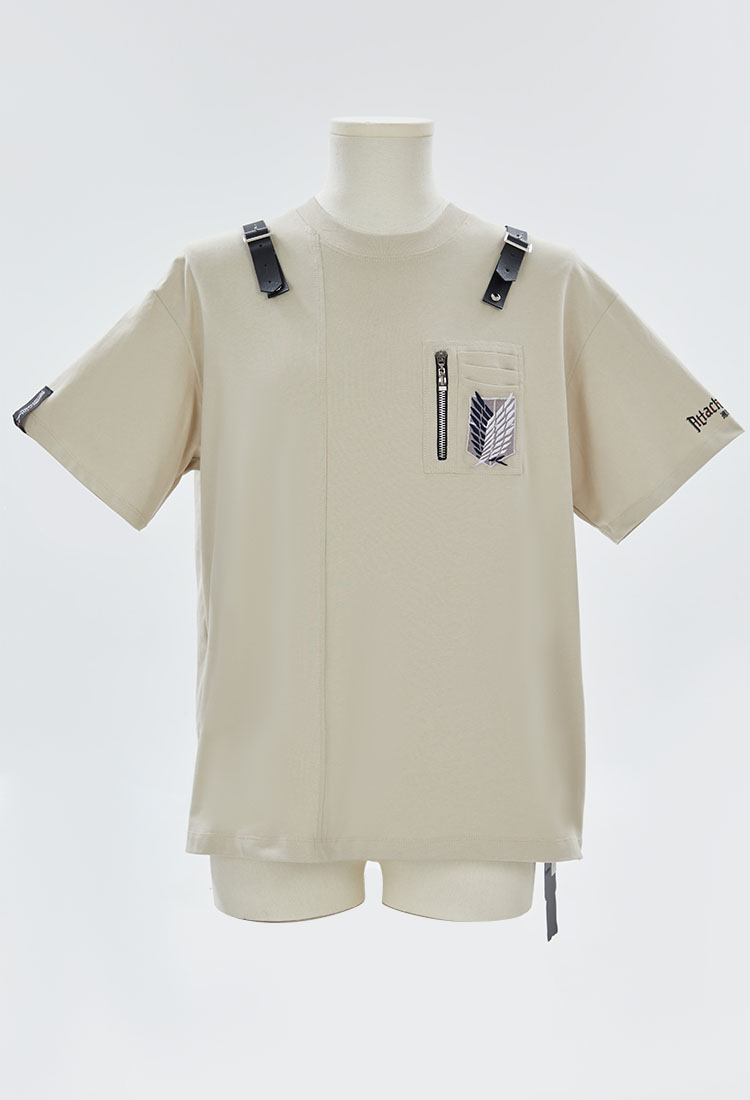 - The functional style design of the chest pocket and belt buckle fits well with the Attack on Titan elements. The iconic Wings of Freedom emblem design on the front and back is reminiscent of the Survey Corps uniform.