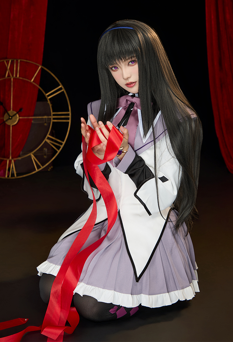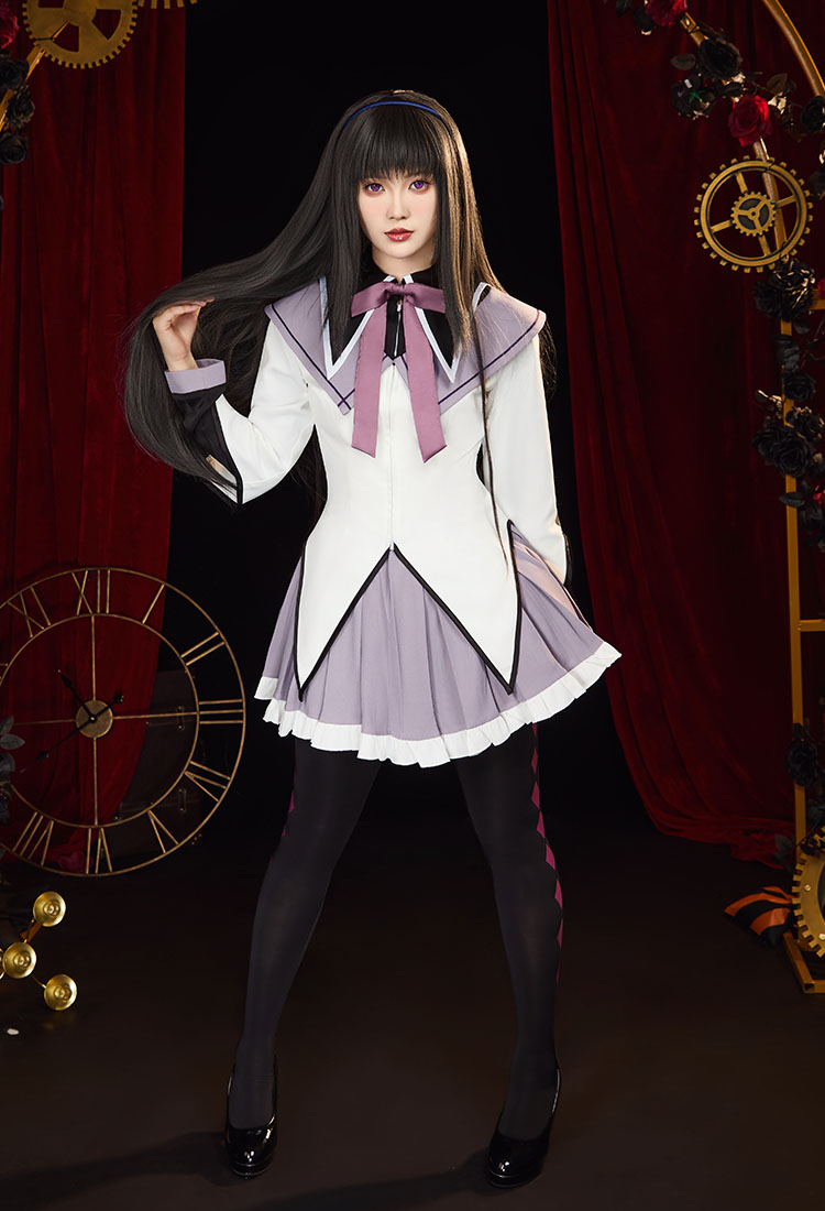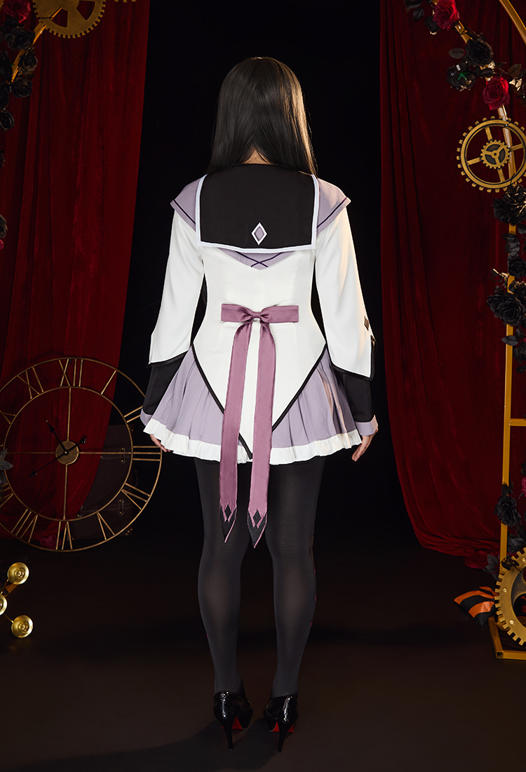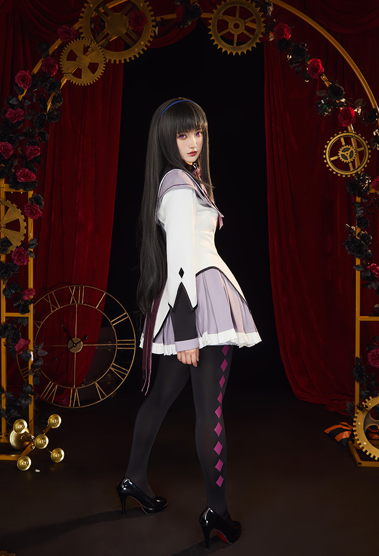Step into the mysterious charm of Homura Akemi with this Officially Licensed Puella Magi Madoka Magica Cosplay Costume Set. Featuring a delicate sailor collar with embroidered white diamond cutouts, this costume highlights every detail of Homura’s iconic look.