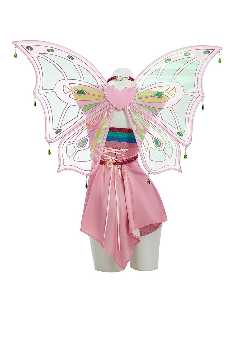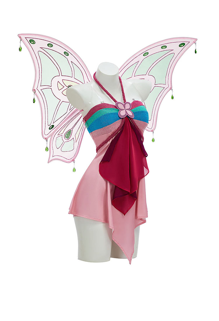Bloom with Flora’s elegance in this Enchantix cosplay set! The costume features a silky satin-effect dress paired with woven straps for a graceful silhouette. The chest is adorned with double-layer mesh digitally printed details, faithfully recreating Flora’s enchanting design. Complete with gloves, headpiece, foot accessories, leggings, and wings, this set captures her magical aura and brings her fairy form to life—perfect for cosplay events, performances, or collectors.