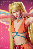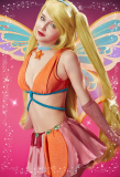 Shine like the fairy of the sun with this Enchantix Stella cosplay costume! The outfit features a bright orange top with blue woven straps and a stylish skirt. The pants front panel is detailed with digital-printed mesh accents, perfectly restoring Stella’s radiant design. Made with layered fabrics for comfort and authenticity, the set includes gloves, headpiece, choker, foot accessories, leggings, and wings—bringing Stella’s luminous Enchantix form to life for cosplay events, stage, or collections.