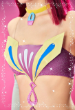 Step into the world of technology and magic with this Enchantix Tecna cosplay costume! Designed with stretch glitter fabric combined with leather panels, the top and skirt are connected with hook fastenings. Matte purple leather is contrasted with reflective blue leather, restoring Tecna’s futuristic and elegant Enchantix look. The set includes gloves, pants, foot accessories, choker, headpiece, adjustable shoulder straps, and wings—perfect for conventions, cosplay performances, or collections.